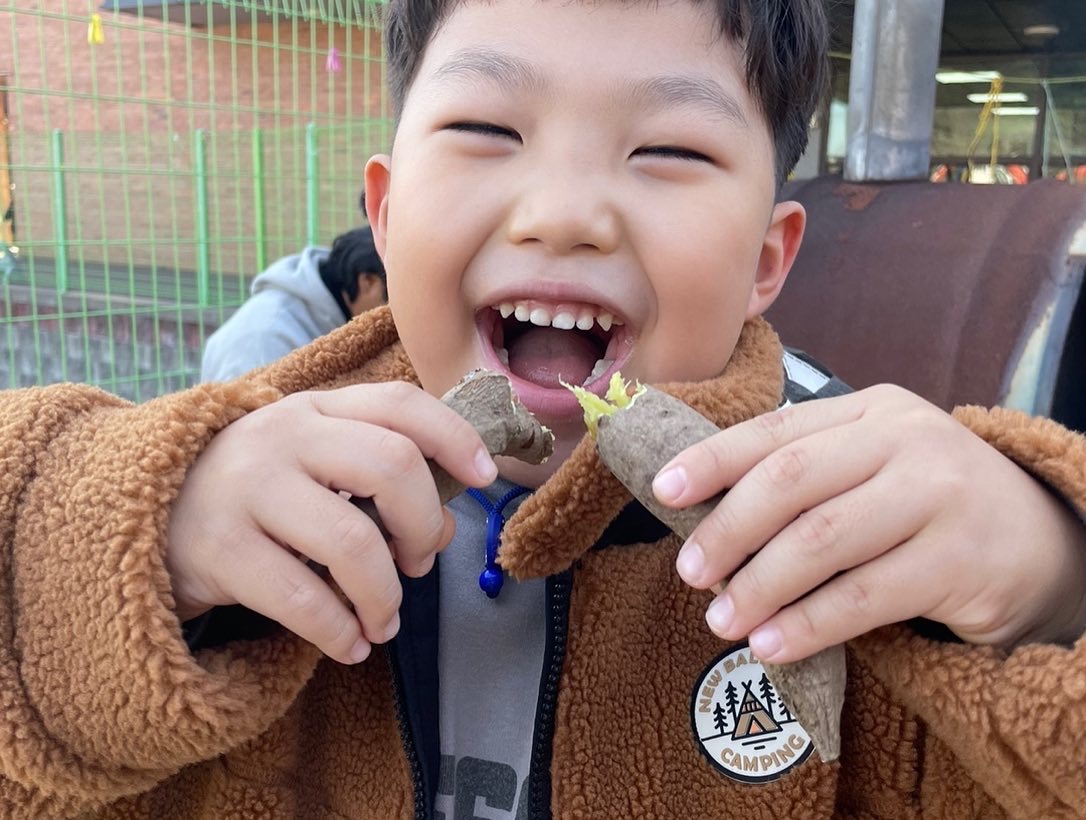 군고구마데이는 말그대로 군고구마를 먹는 날입니다. 하지만 그냥 집에서 에어프라이게에 돌려 먹는 군고구마와는 차원이 다릅니다. 집에서는 부모님께서 예쁘게 껍질 벗겨 호호 불어 편하게 먹겠지만, 아기스포츠단에서는 아닙니다.
