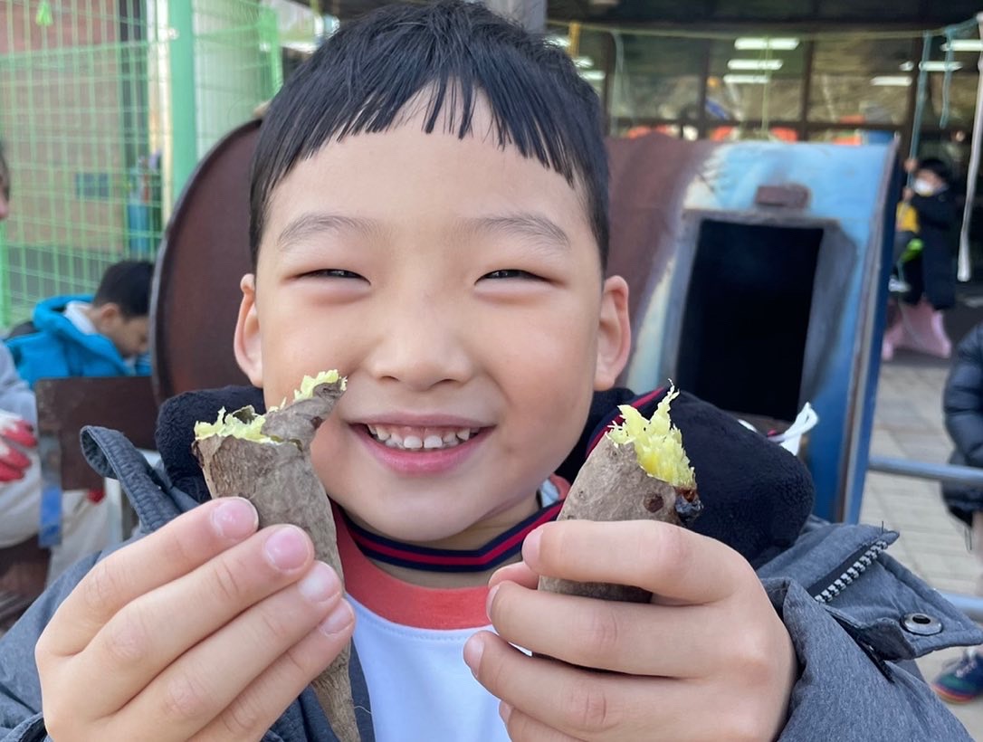 그렇게 군고구마가 다 익는 순간, 선생님의 "자~애들아~먹자~" 소리에 아이들은 우루루 몰려오지요. 친구들이 하나씩 받는 그 군고구마가 나에게 언제 오나 또 애가 탑니다. 그렇게 군고구마가 아이의 손에 쥐어졌는데 바로 먹을 수도 없습니다. 까맣게 탄 껍질을 스스로 벗겨야 합니다. 뜨거워 호호 불어가며 군고구마 껍질을 까는데, 따뜻한 온기에 콧물이 나오기도 합니다. 콧물 슥슥 닦아 가며 껍질을 벗기고, 노란 속살이 나오고, 그것을 한입 베어물 때! 그 감동!!! 어찌 부모님이 집에서 주시는 그 군고구마와 같을 수가 있을까요?