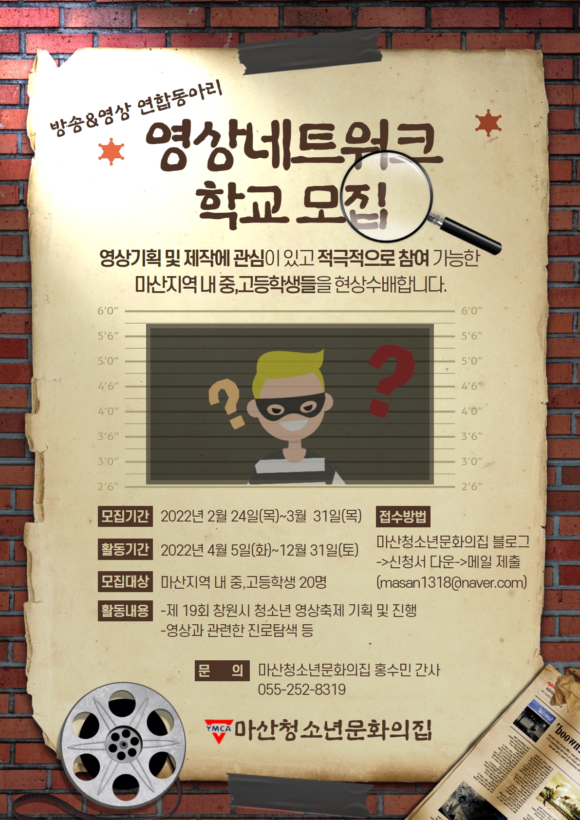 마산청소년문화의집에서는 영상기획 및 제작에 관심이 있고 적극적인 참여가 가능한 마산지역 내 중, 고등학생들을 대상으로 2022년 영상네트워크(방송&영상 연합동아리) 학교 또는 개인을 모집중입니다!