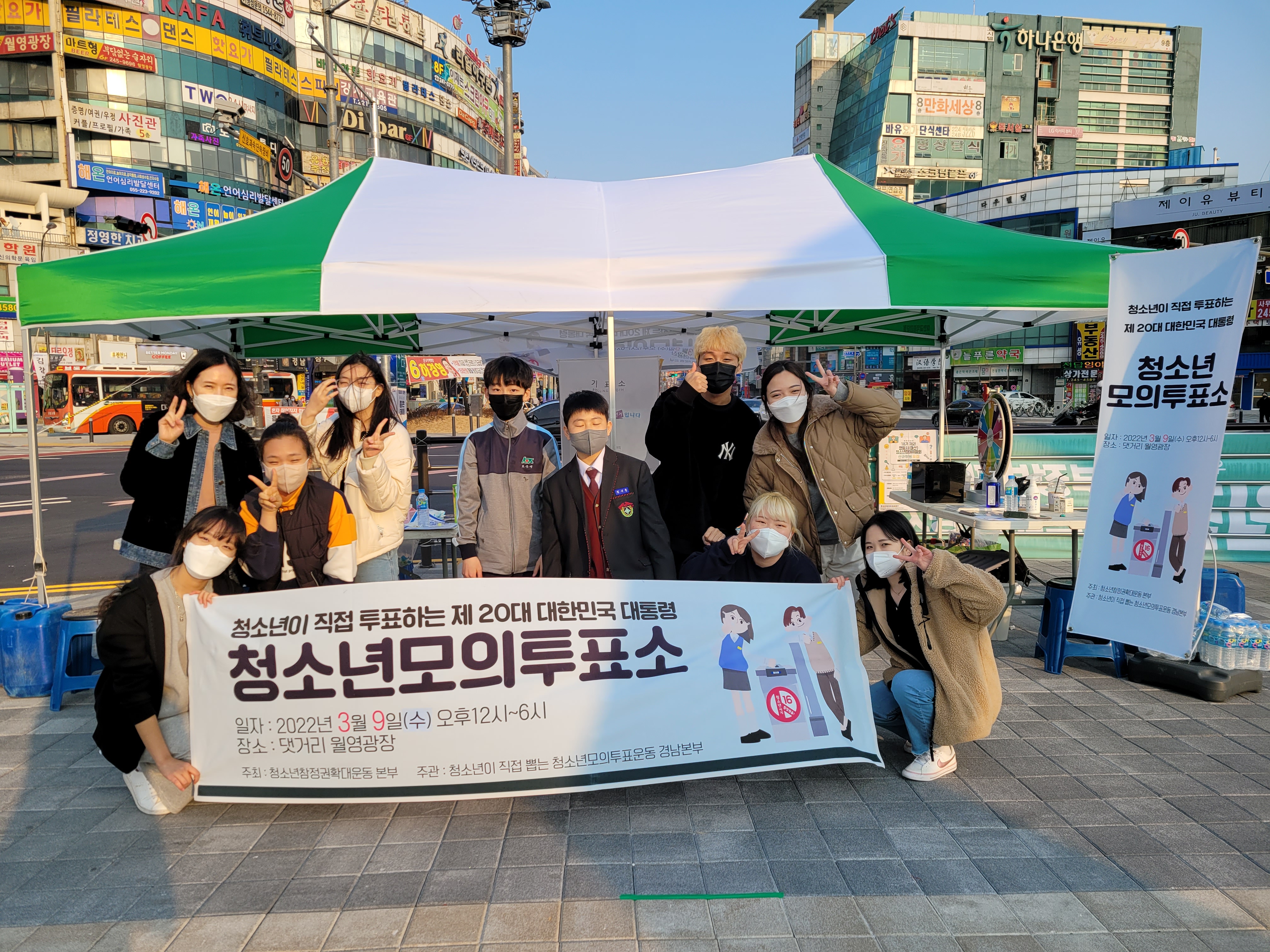 마산청소년YMCA회원들은 창원시 청소년들이 직접 모의투표로 제 20대 대한민국 대통령을 선출하고, 민주시민으로서 청소년 당사자의 주권을 표현 할 수 있는 장을 마련하기 위해 '청소년이 직접 뽑는 제 20대 대한민국 대통령 청소년 모의투표'를 기획하고 진행하였습니다.