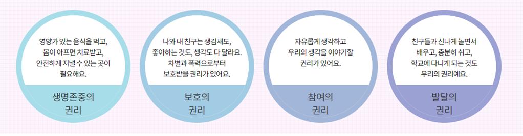 자신의 행복을 위해 자유롭게 누려야 할 모든 환경과 활동을 '권리'라고 합니다. 아동 권리에 관한 국제 협약은 아동들이 자신의 연령에 적합한 놀이와 오락 활동의 참여를 권리로 인정하고 있으며 각 국가는 아동의 권리를 존중하고 촉진하도록 장려하고 있습니다.