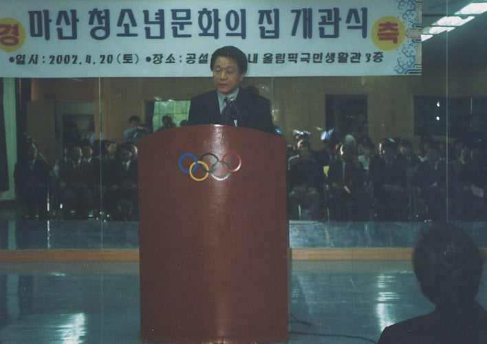 올림픽기념관에 마산청소년문화의집 현판을 걸었습니다.