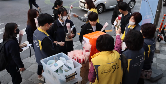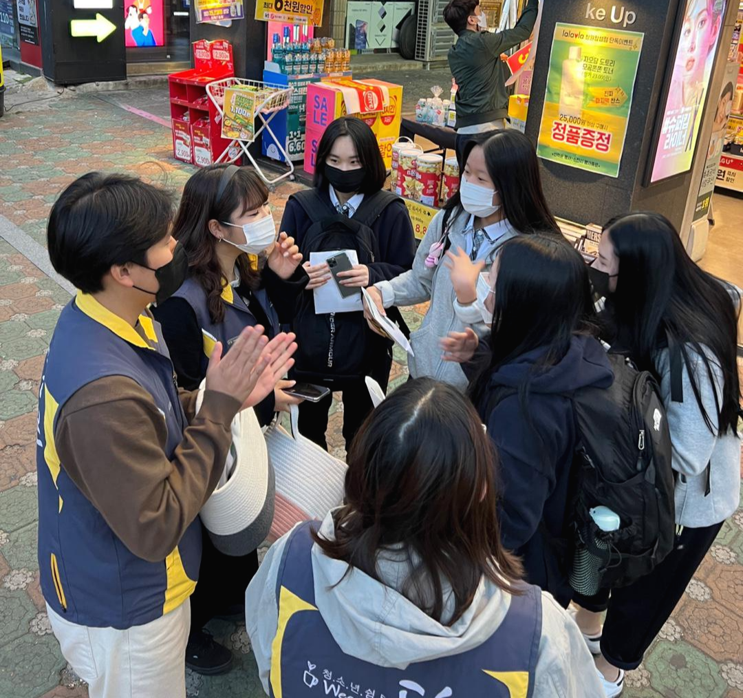 이번 아웃리치는 위카페다온 그리다 봉사자 선생님들과 함께 진행하였습니다. 대학생 봉사자 선생님들이 함께 합성동 구석구석 모든 청소년들에게 위카페다온을 홍보하며 이벤트 부스를 운영하였습니다.