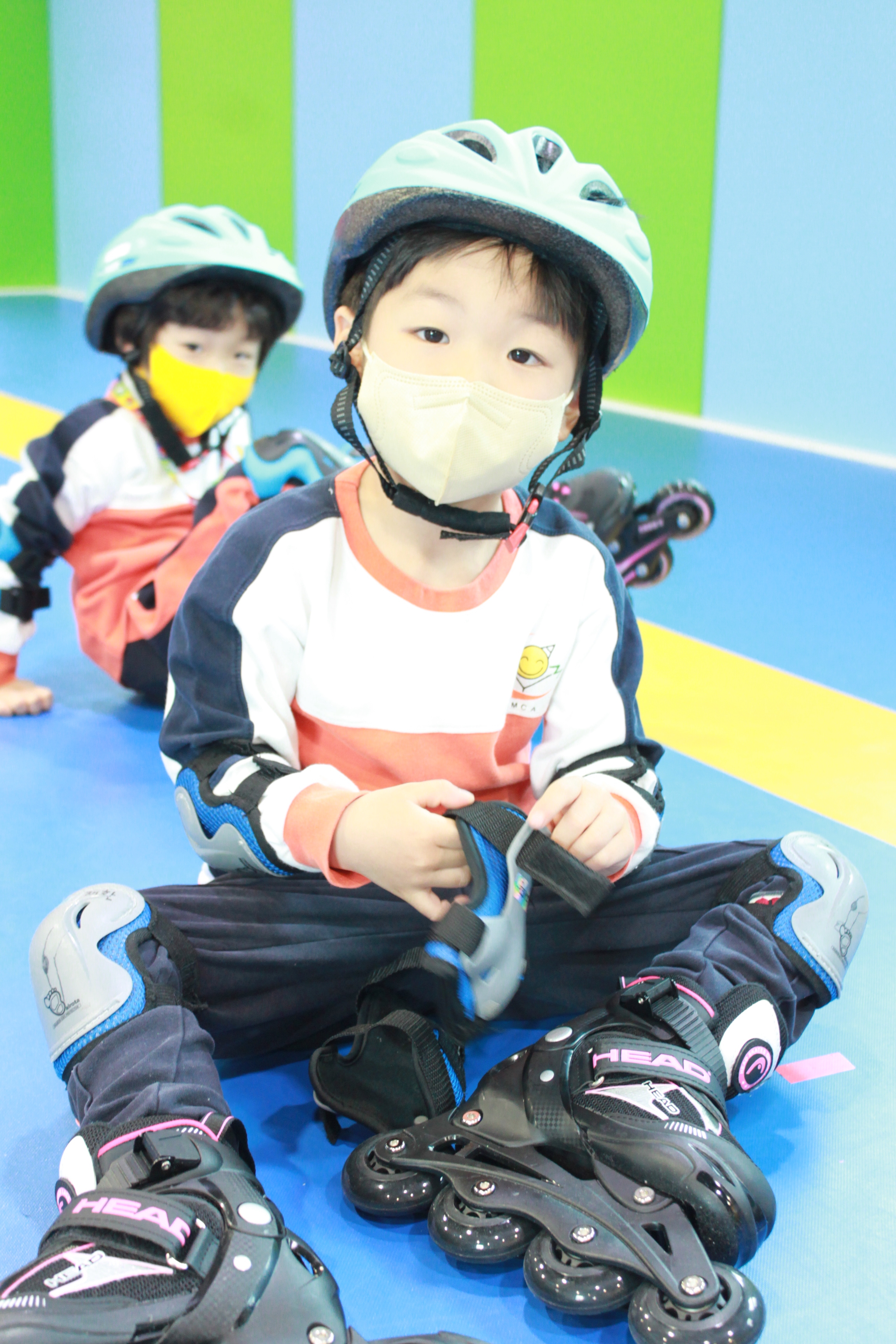 반면, 인라인스케이트가 처음인 6살 친구들은 한동안 바닥과 씨름해야 했습니다. 머리카락이 땀에 젖도록 중심잡기에 열중하고, 훌쩍훌쩍 울면서도 묵묵히 다시 일어나기에 도전하는 친구들이 너무나 대견했습니다. “얘들아~ 자꾸 넘어져서 속상할텐데 포기안하는 것 너무 멋져! 노력하는 친구가 제일 최고야!!”하며 위로(?)섞인 격려를 건네자 오히려 씩씩하게 “나는 하나도 안힘든데?!” “맞아 그리고 엄청 재밌어!” 하면서 의젓한 모습을 보였답니다. 아이들의 체력만이 아니라 마음도 쑥쑥 자라고 단단해져가고 있음을 한번 더 느꼈답니다.