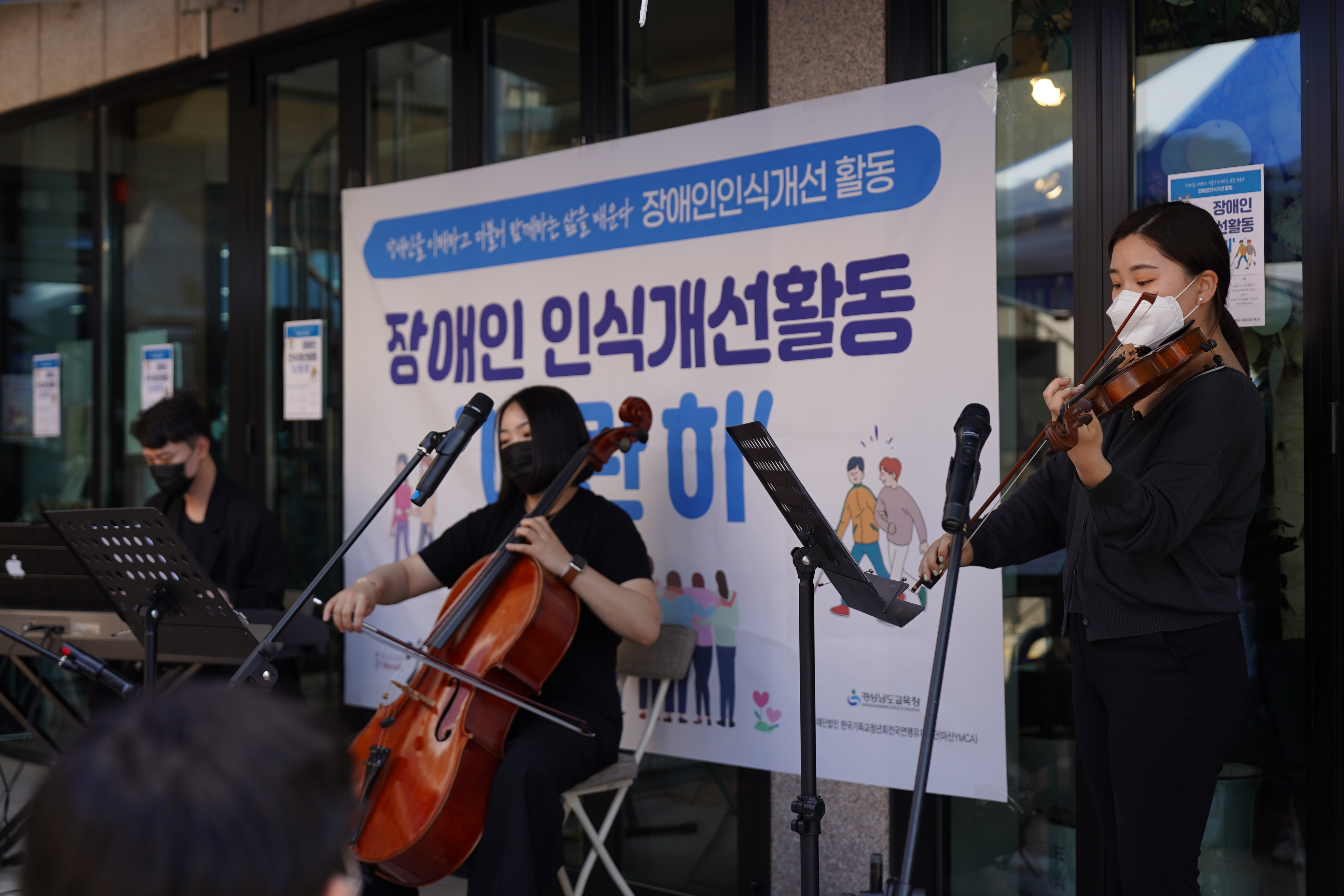장애인 인식 개선 활동을 마치고 2부 활동인 '작은 음악회'를 진행하였습니다.