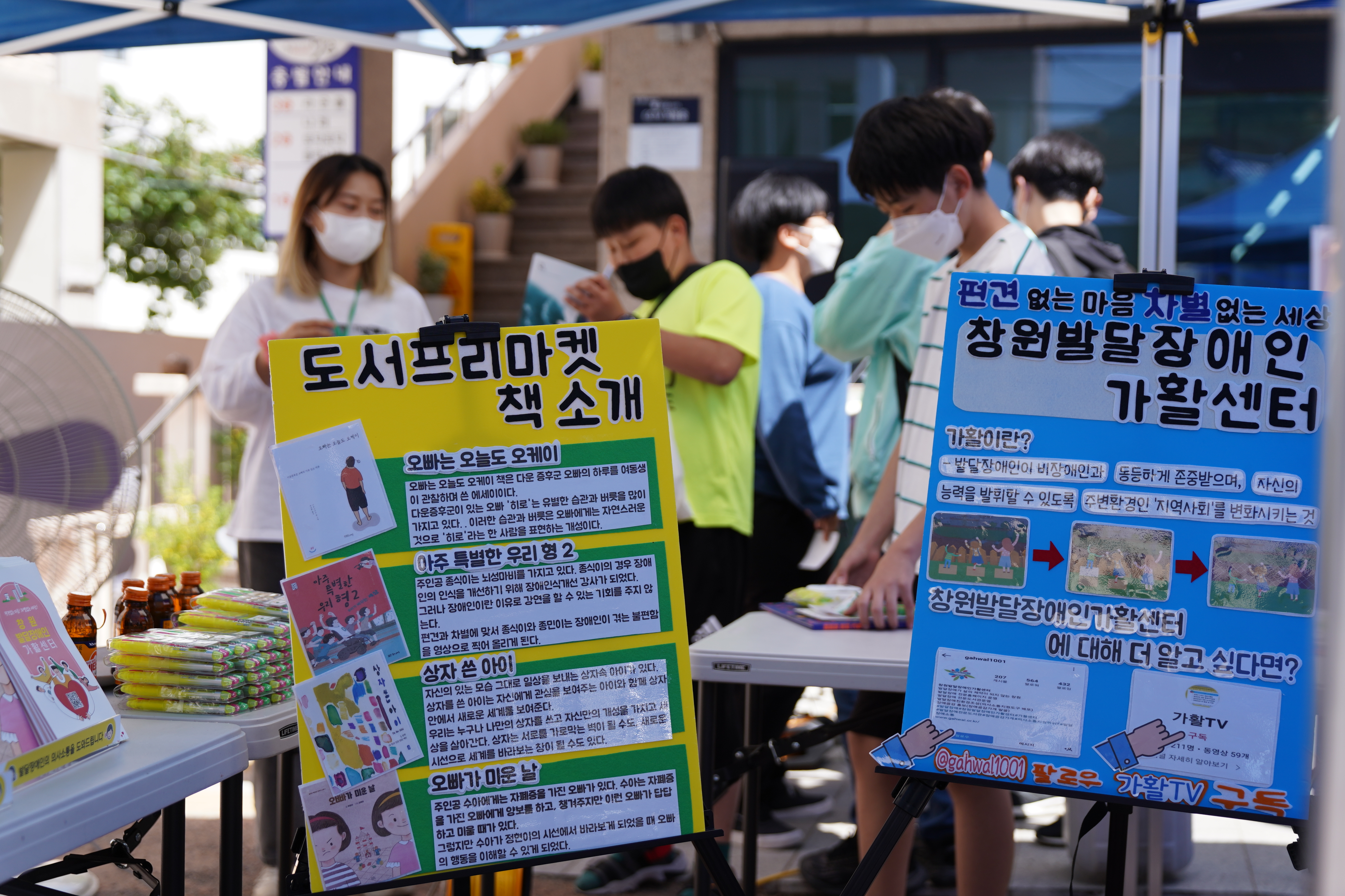 1층 마당에서는 가활센터 및 장애인에 대한 교육과 장애인 관련 도서프리마켓을 진행하였습니다.