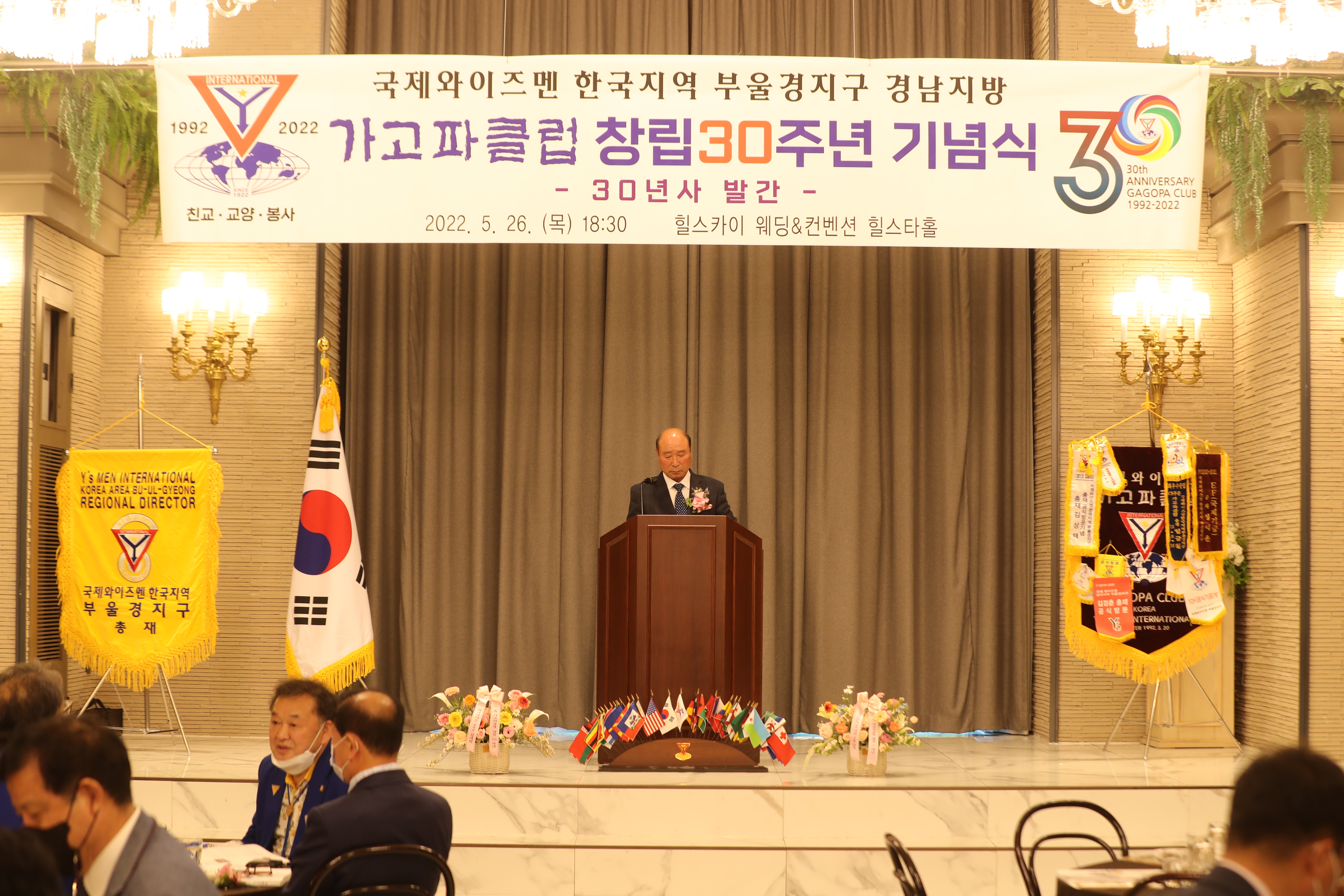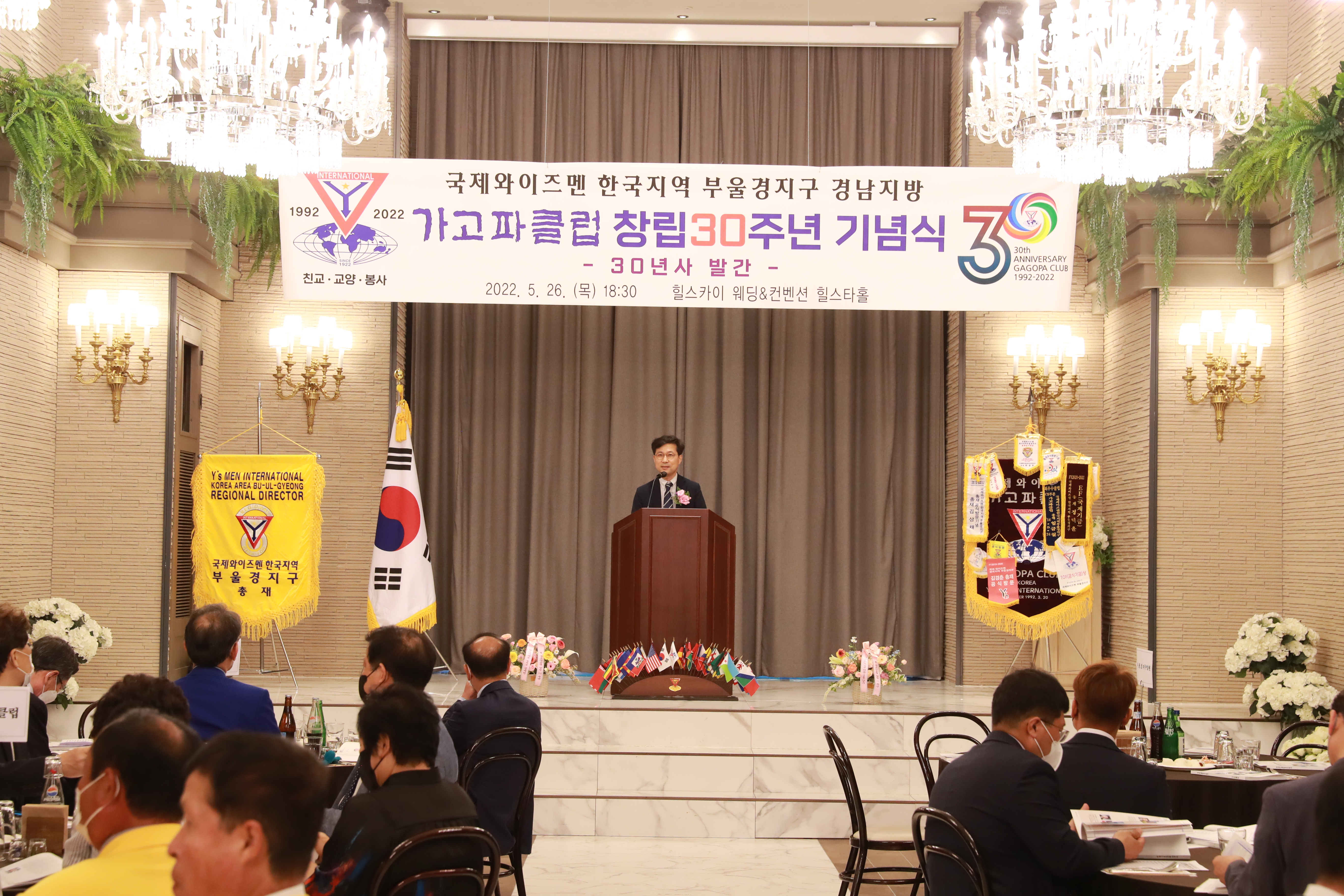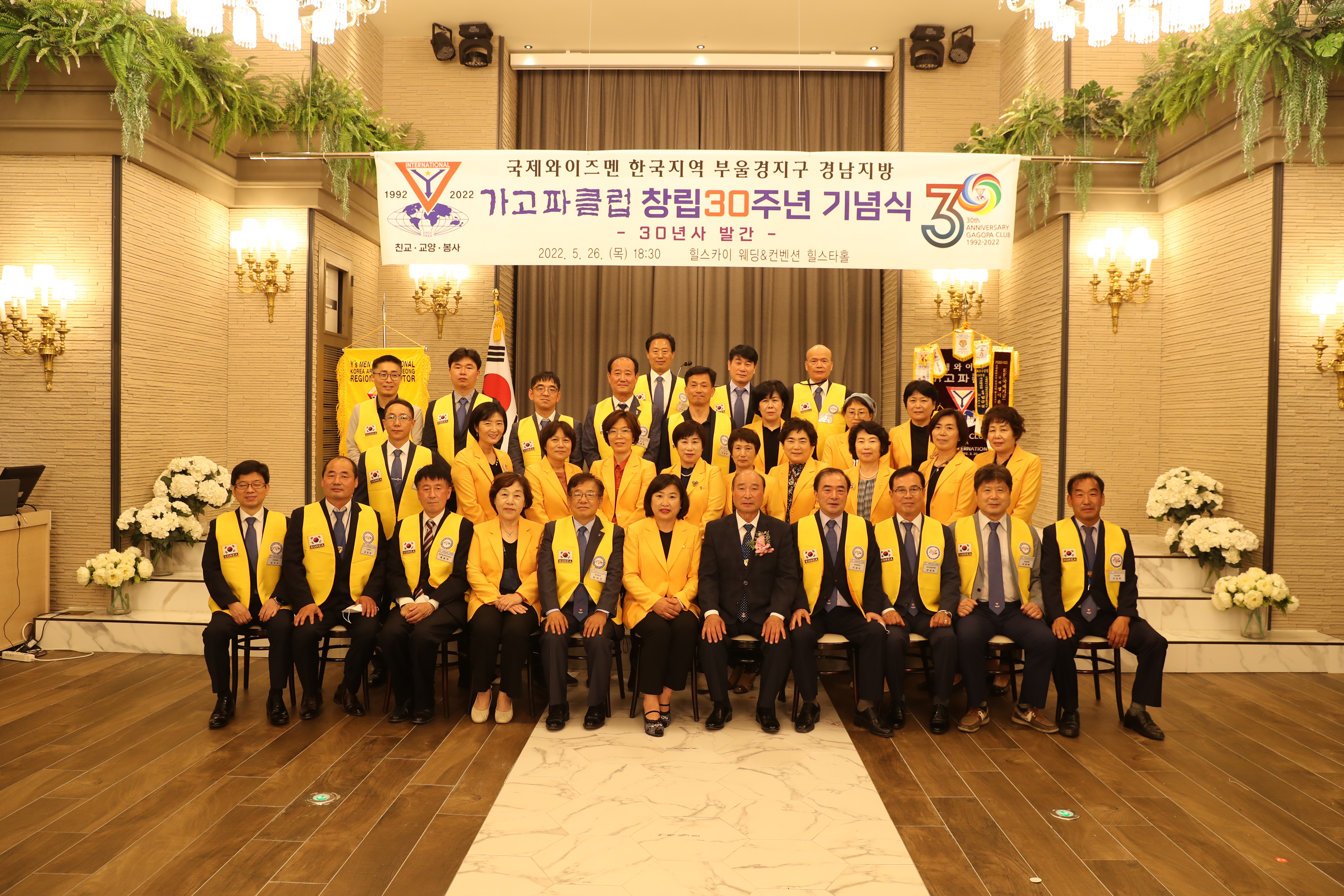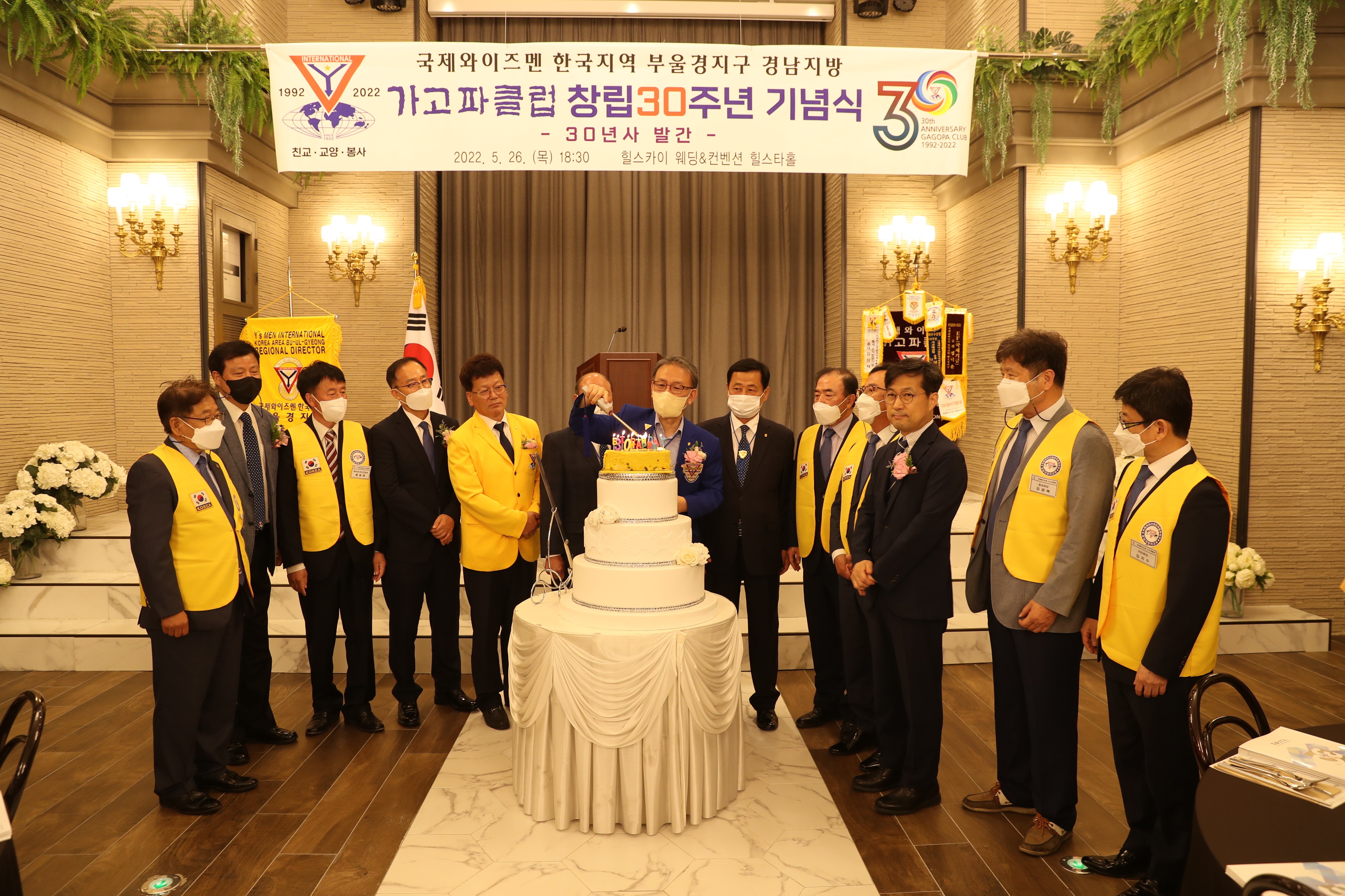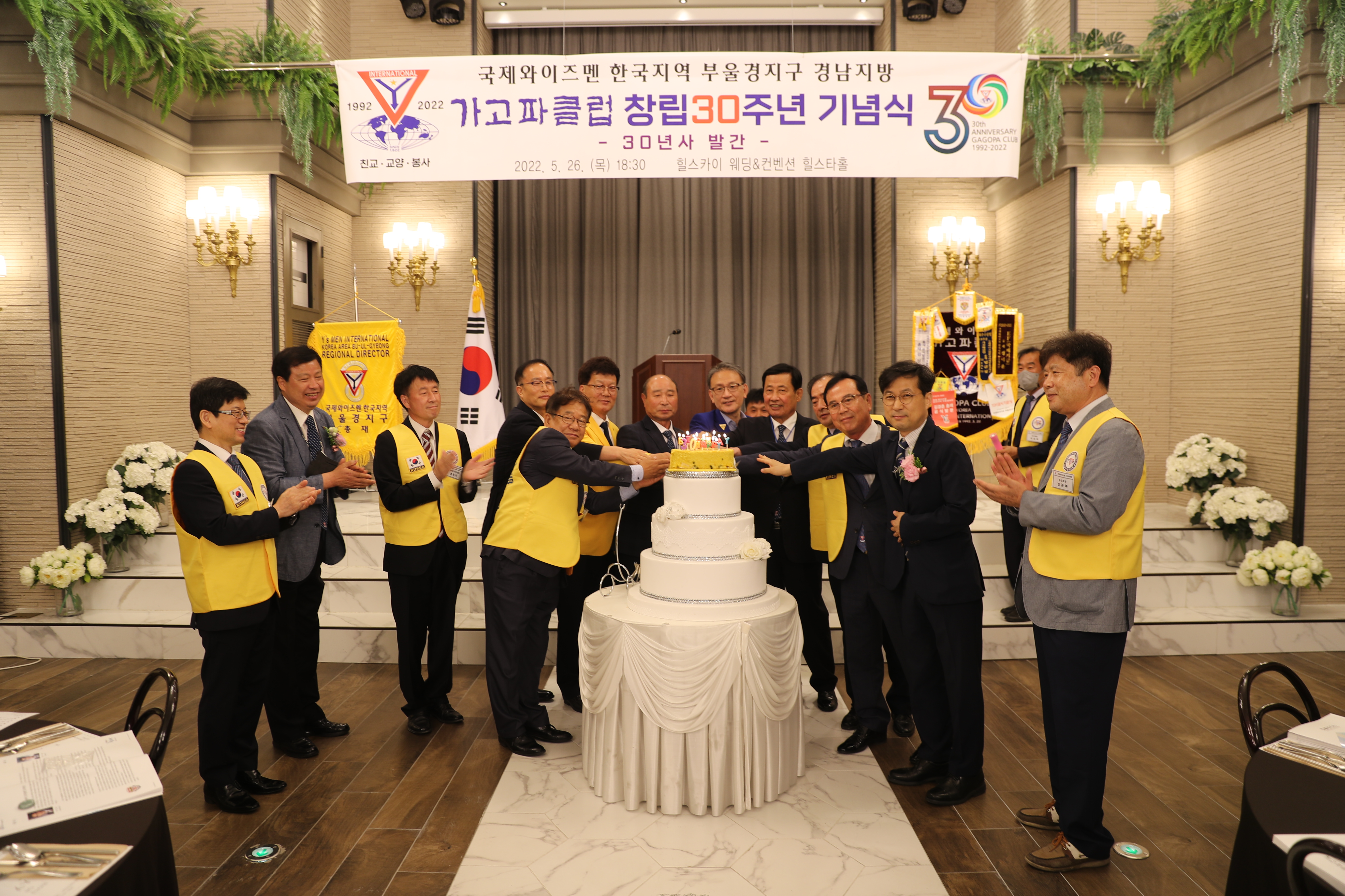 국제와이즈멘 한국지역 부울경지구 경남지방 [가고파클럽] 창립 30주년 기념식이 5월 26일(목) 오후 6시 30분 힐스테이트 웨딩&컨벤션에서 열렸습니다. 당초 지난 3월로 계획했던 행사가 코로나-19로 연기되어 5월에 개최되었습니다.