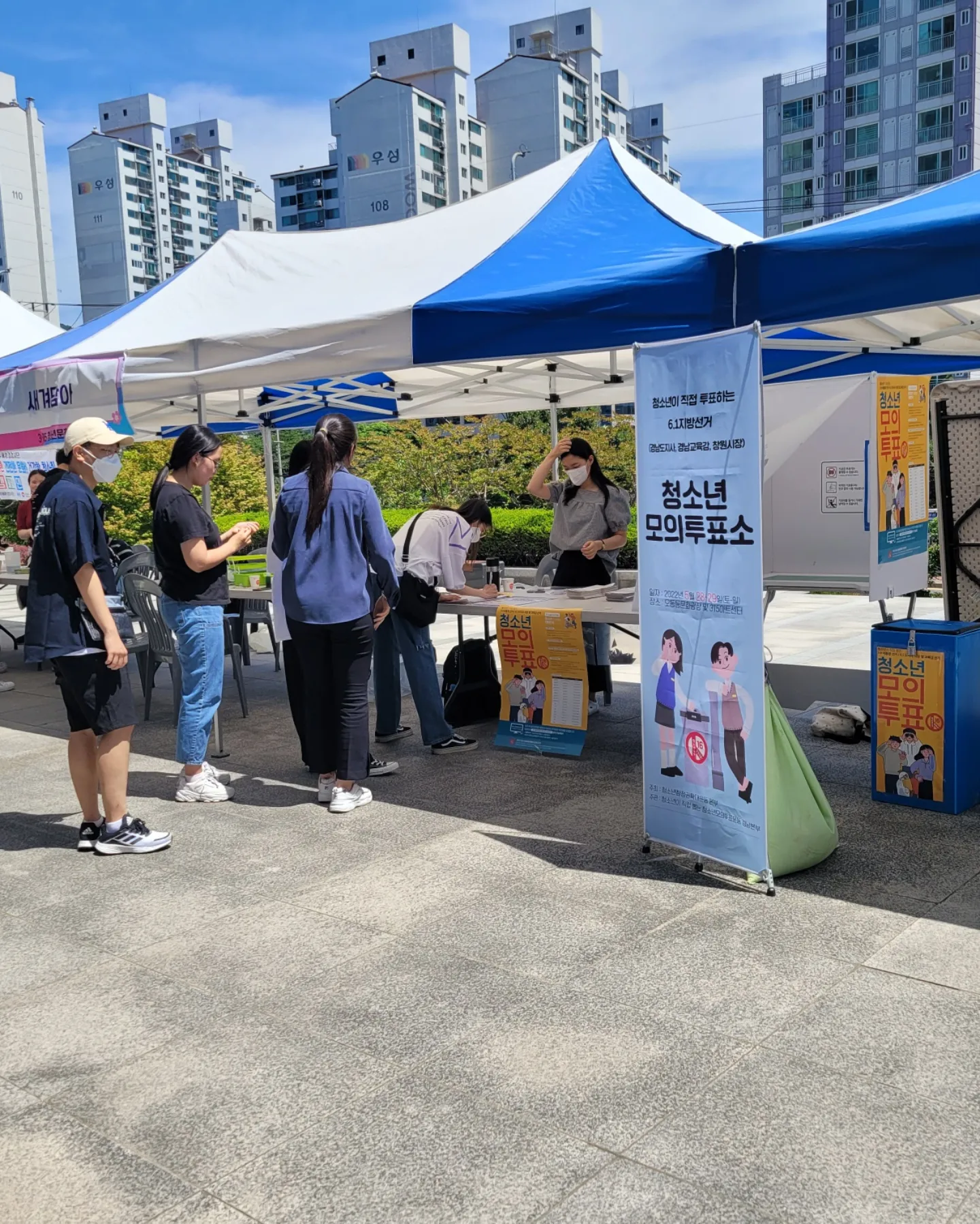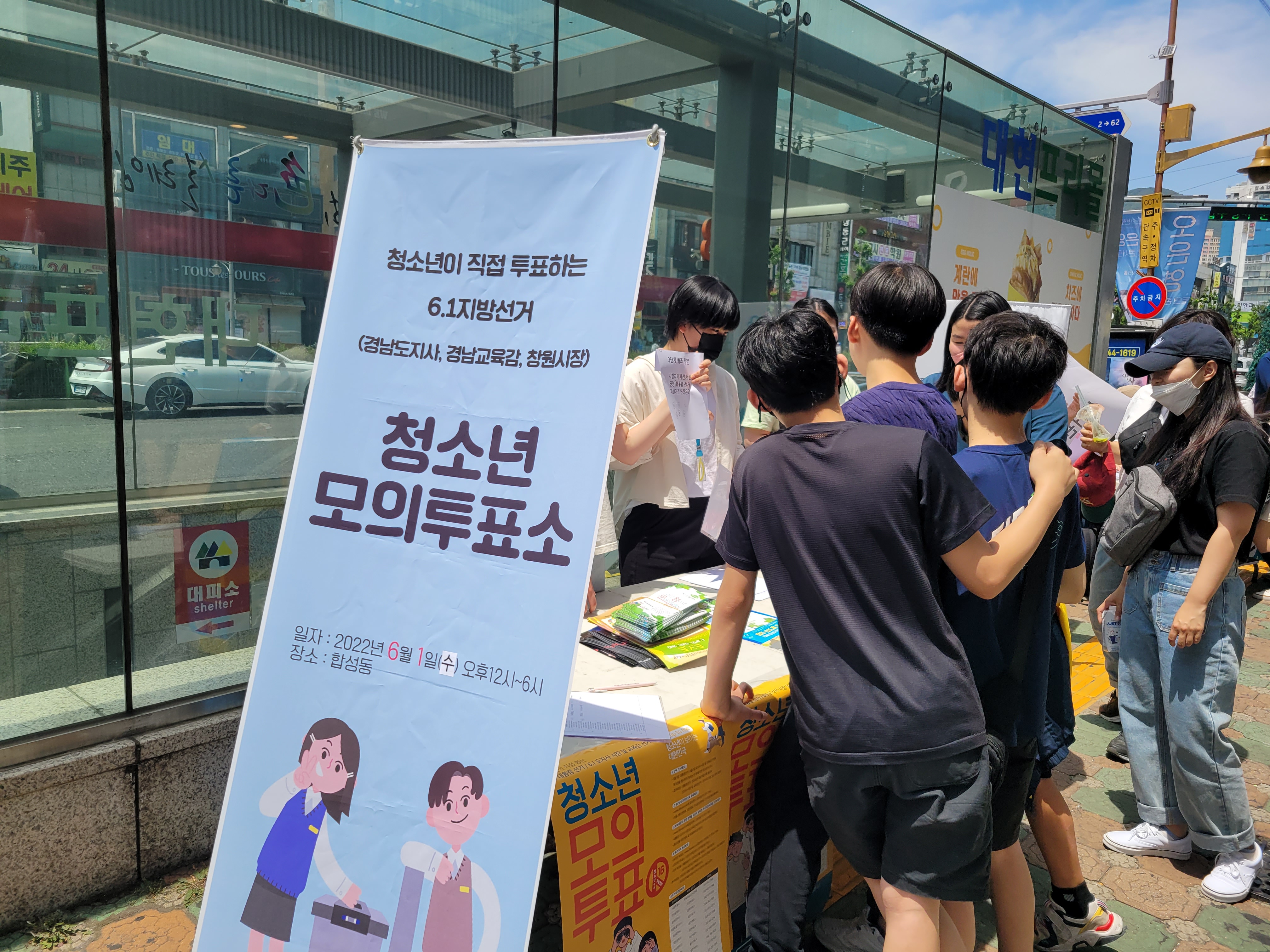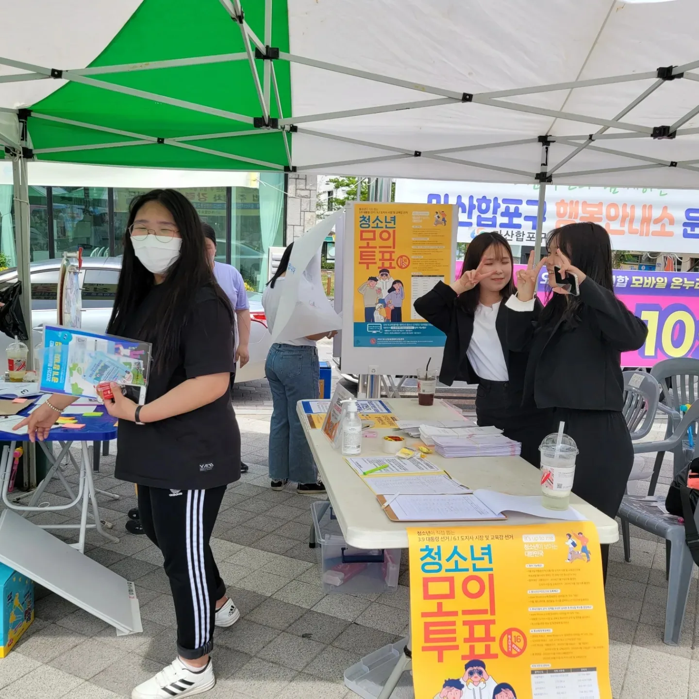 이날은 합성동 베스킨라빈스 앞과 댓거리 월영광장에서 청소년모의투표 오프라인 투표소를 열었습니다.
