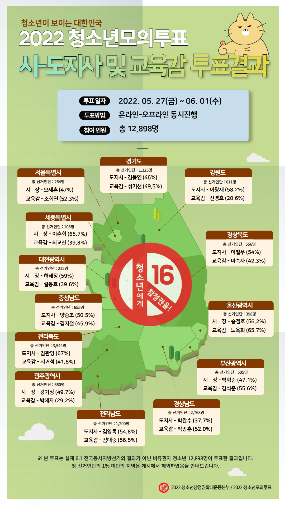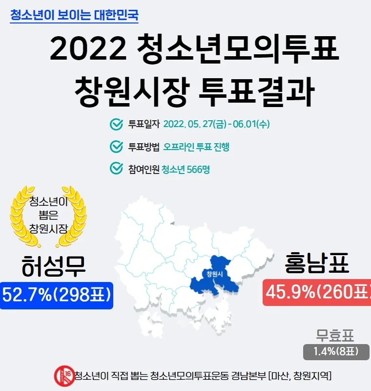 청소년이 직접 뽑은 경남도지사와 경남교육감의 결과를 아래 사진을 참고하시면 아실 수 있습니다!