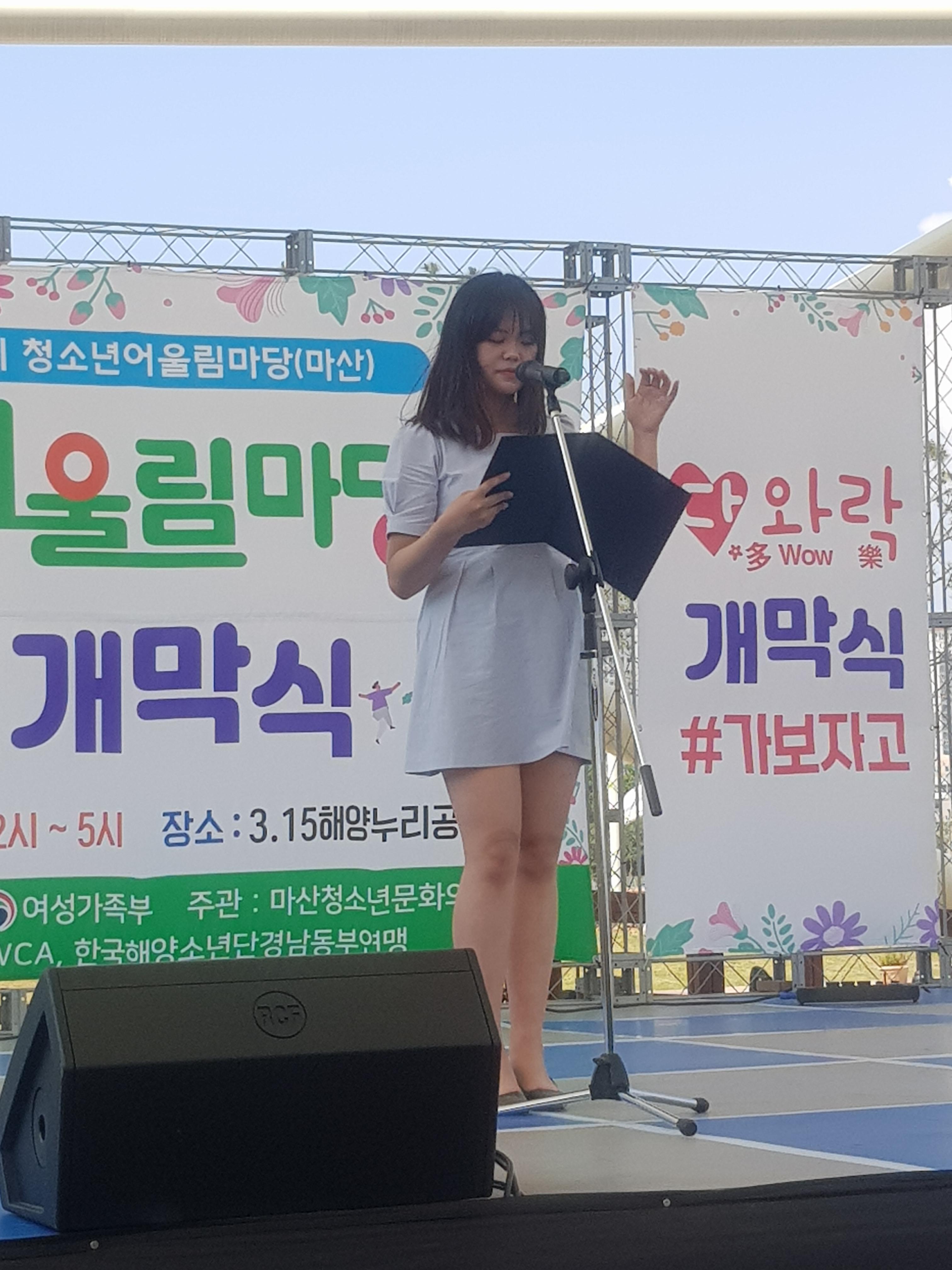 허연지 청소년축제기획단장의 선포사 낭독을 시작으로 정혜란 창원시 제2부시장 의 인사말씀으로 우렁찬 개막을 알렸습니다.