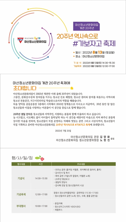 마산청소년문화의집이 올해 20살이 되었습니다!