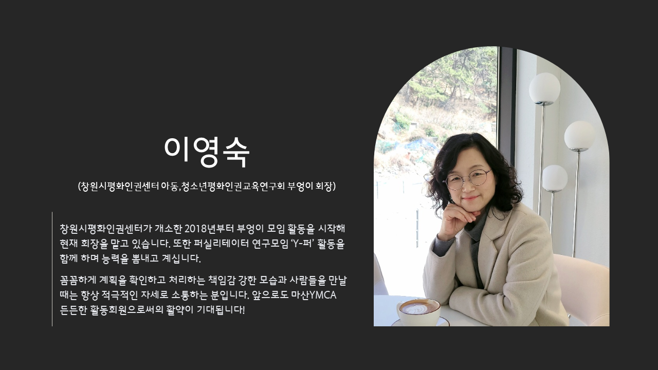 추천인: 이영숙(창원시평화인권센터 아동,청소년 평화인권교육연구회 부엉이 회장)