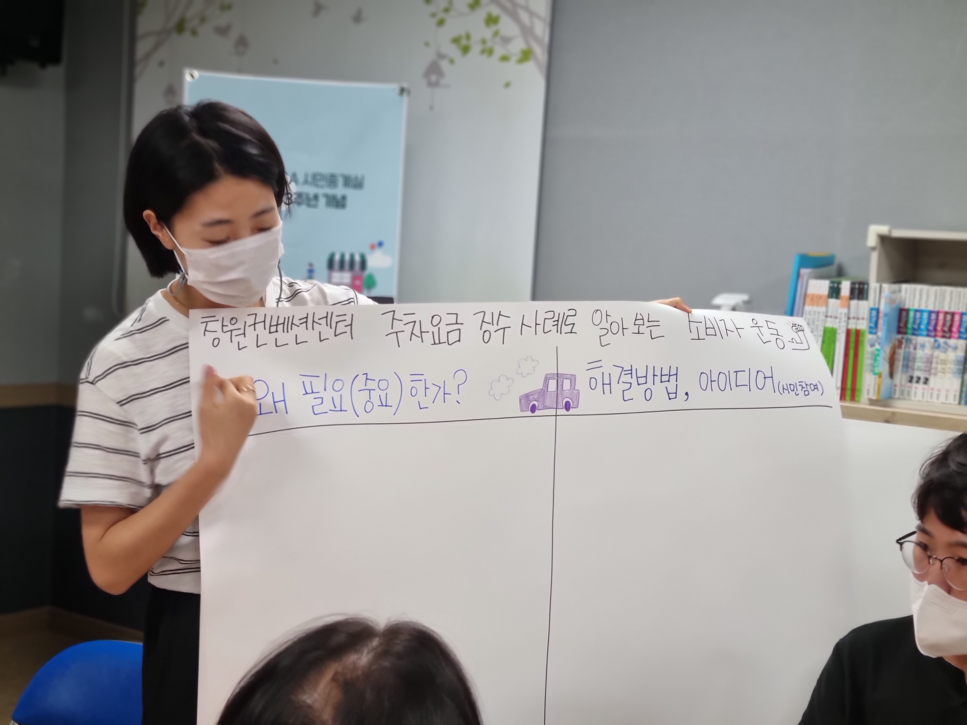 다음으로는 나혜진 간사가 '창원컨벤션센터 주차 요금 징수 사례로 보는 소비자 운동'이라는 주제로 소비자 운동을 발견하고 소비자운동을 진행하는 과정과 현재 상황에 대해 발제를 했구요.