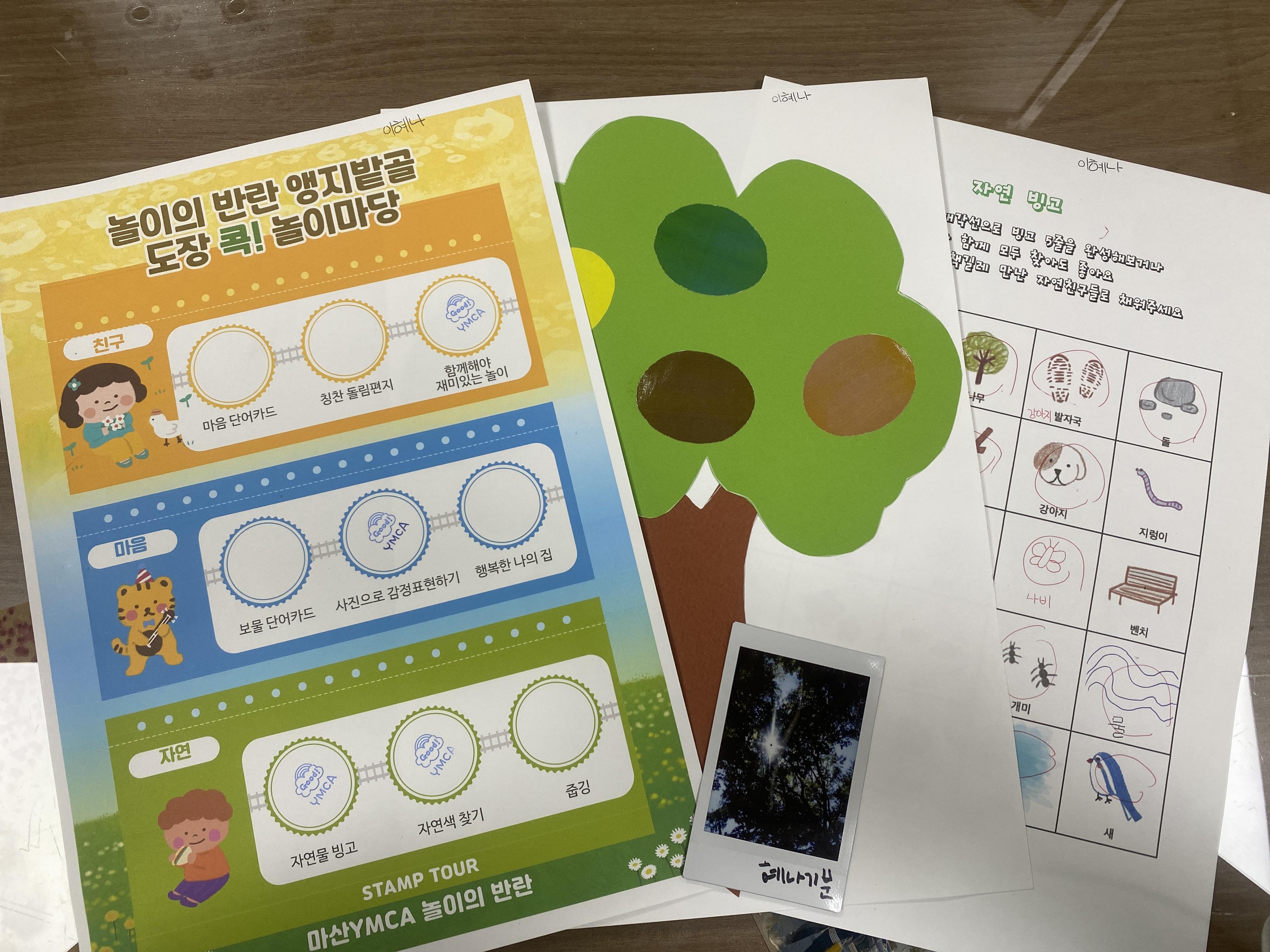 새친구를 초대하여 YMCA를 소개하고 우리의 놀이를 나누는 시간이였습니다. 어떤 날은 돌을 혹은 나뭇가지를 모아와 놀이를 만드는 친구들이지만 오늘은 친구들의 의견을 받아 피구, 숨바꼭질, 무궁화 꽃이 피었습니다로 공동체 놀이를 했습니다.