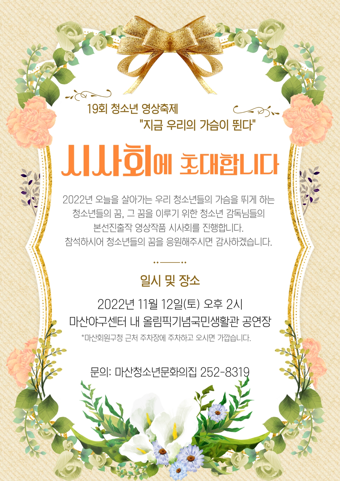 19회 청소년 영상축제 "지금 우리의 가슴이 뛴다" 시사회에 초대합니다!