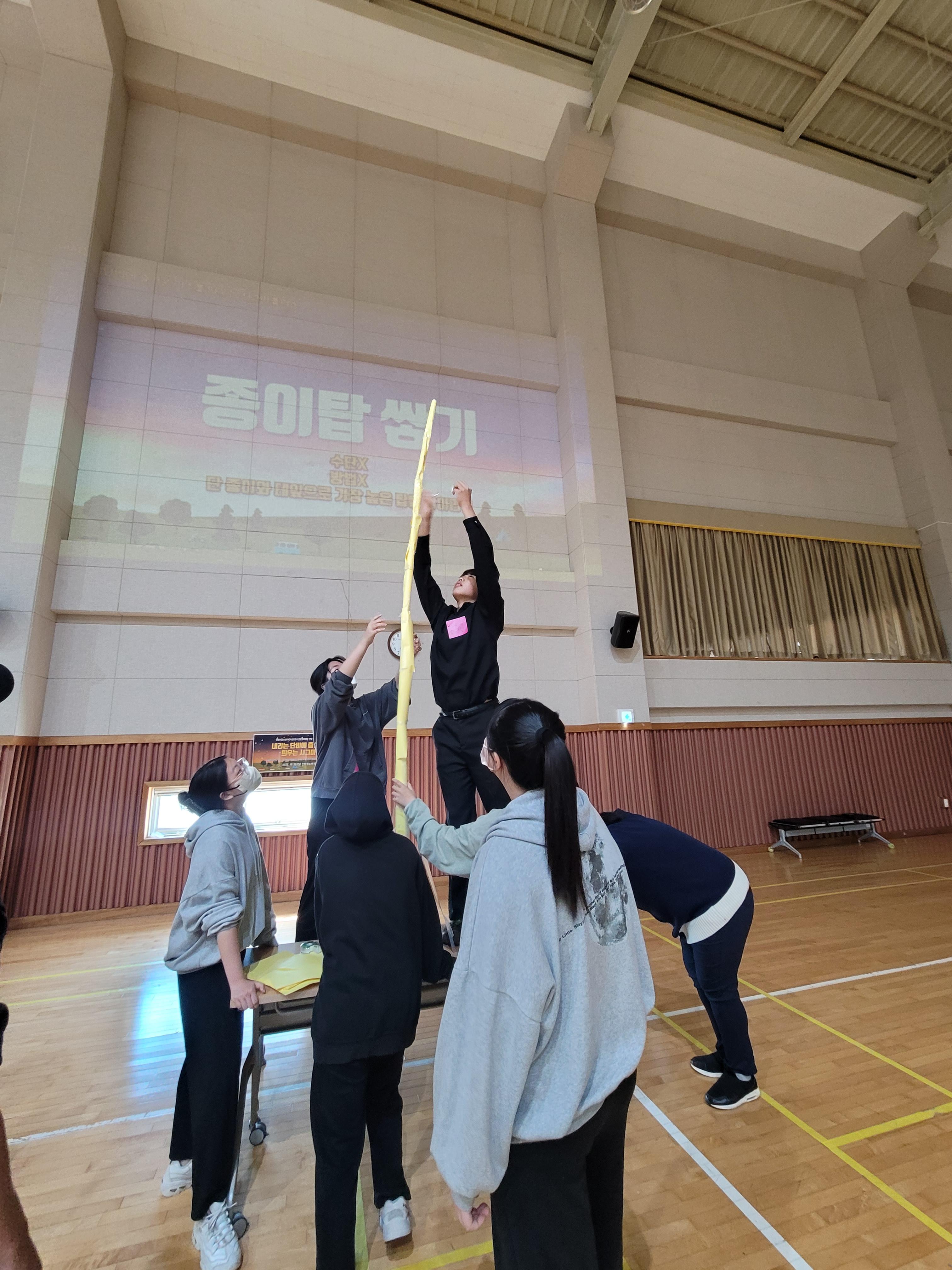 사탕게임을 통해서 즐거움과 달달함을 가져가고, 종이탑쌓기를 통해 서로의 머리를 맞대어 열심히 탑을 쌓았습니다.