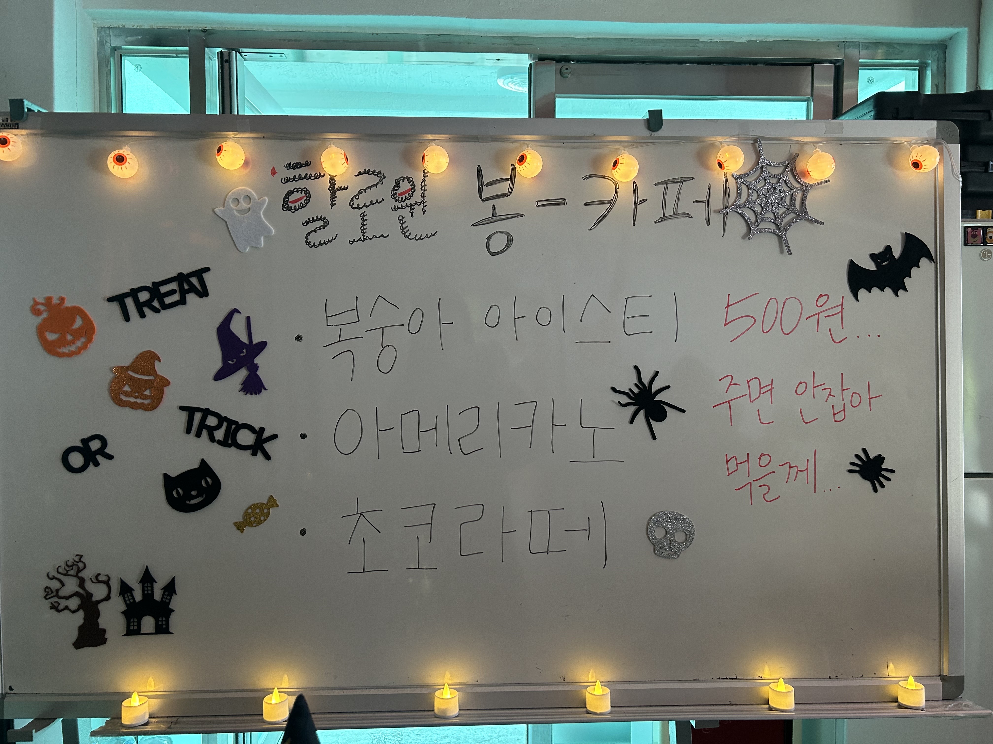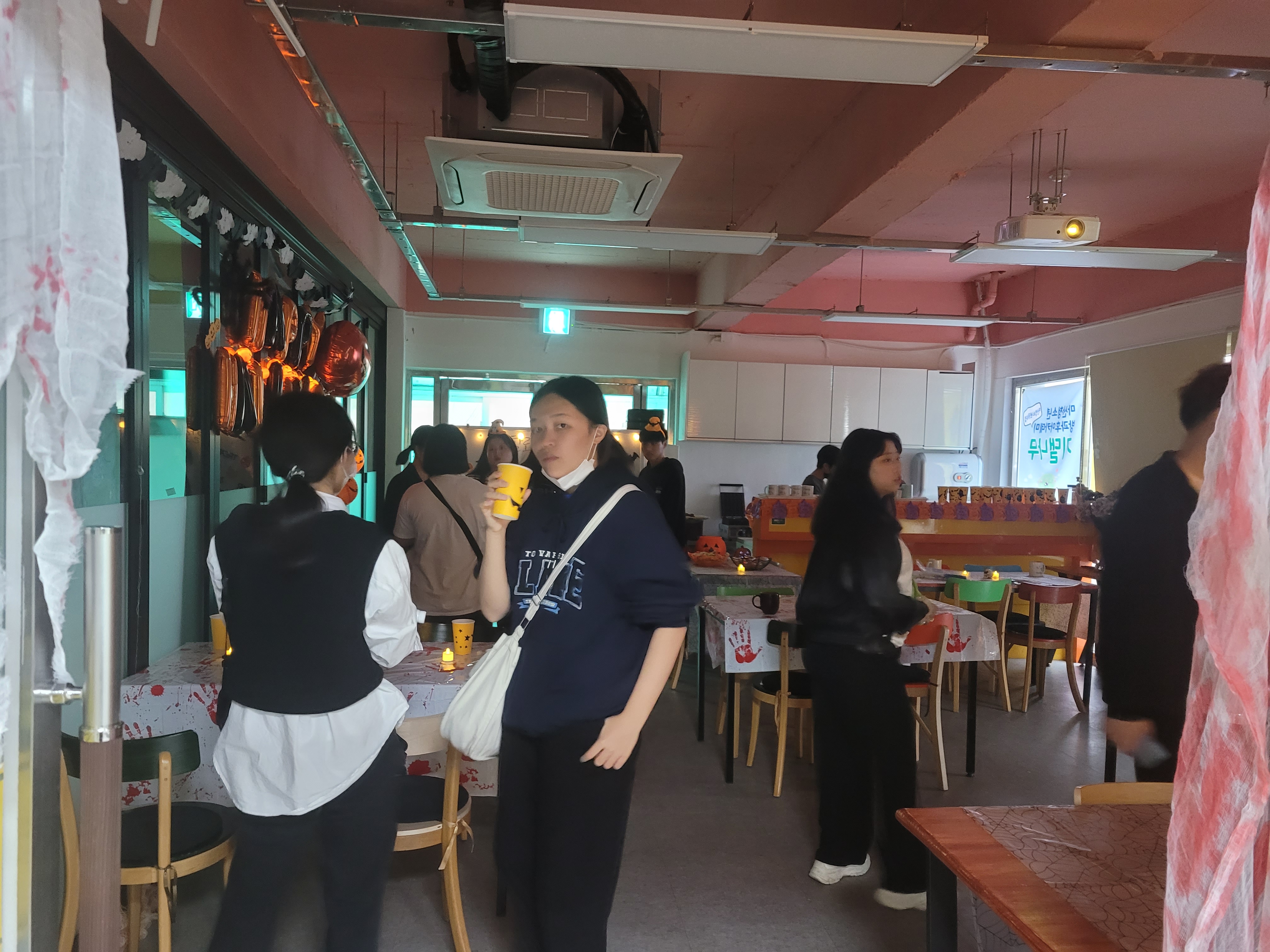 이대봉들의 현란한 말솜씨에 현혹되어 들어온 청소년들이 꾸며놓은 할로윈카페를 보고 우와 외치면서 사진도 찍고 음료도 시켜먹었습니다!