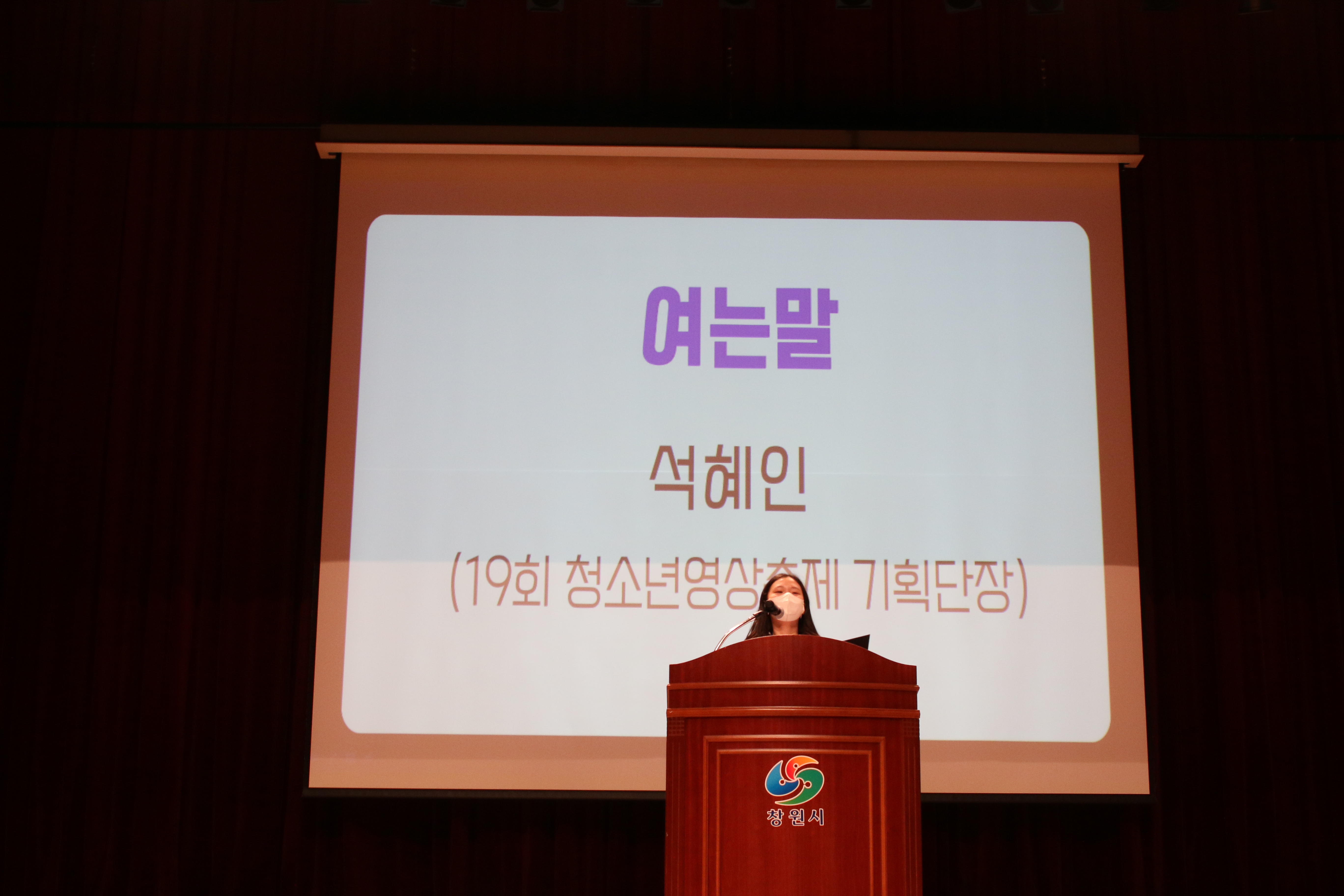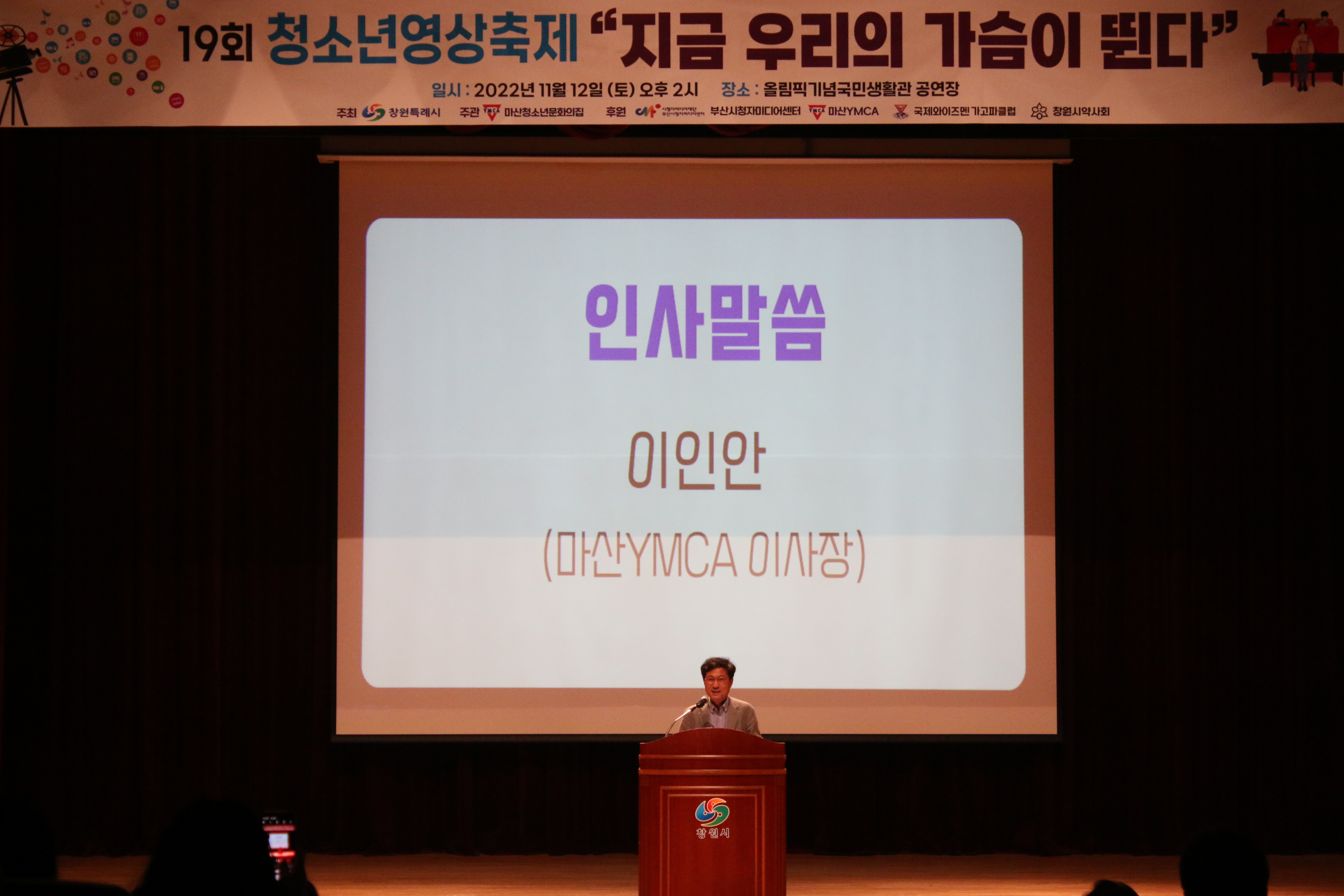 김종필 창원시 복지여성보건국장의 축사를 시작으로 이인안 마산YMCA 이사장 인사말씀, 청소년영상축제 석혜인 기획단장의 여는말로 청소년 영상축제를 시작을 알렸습니다.