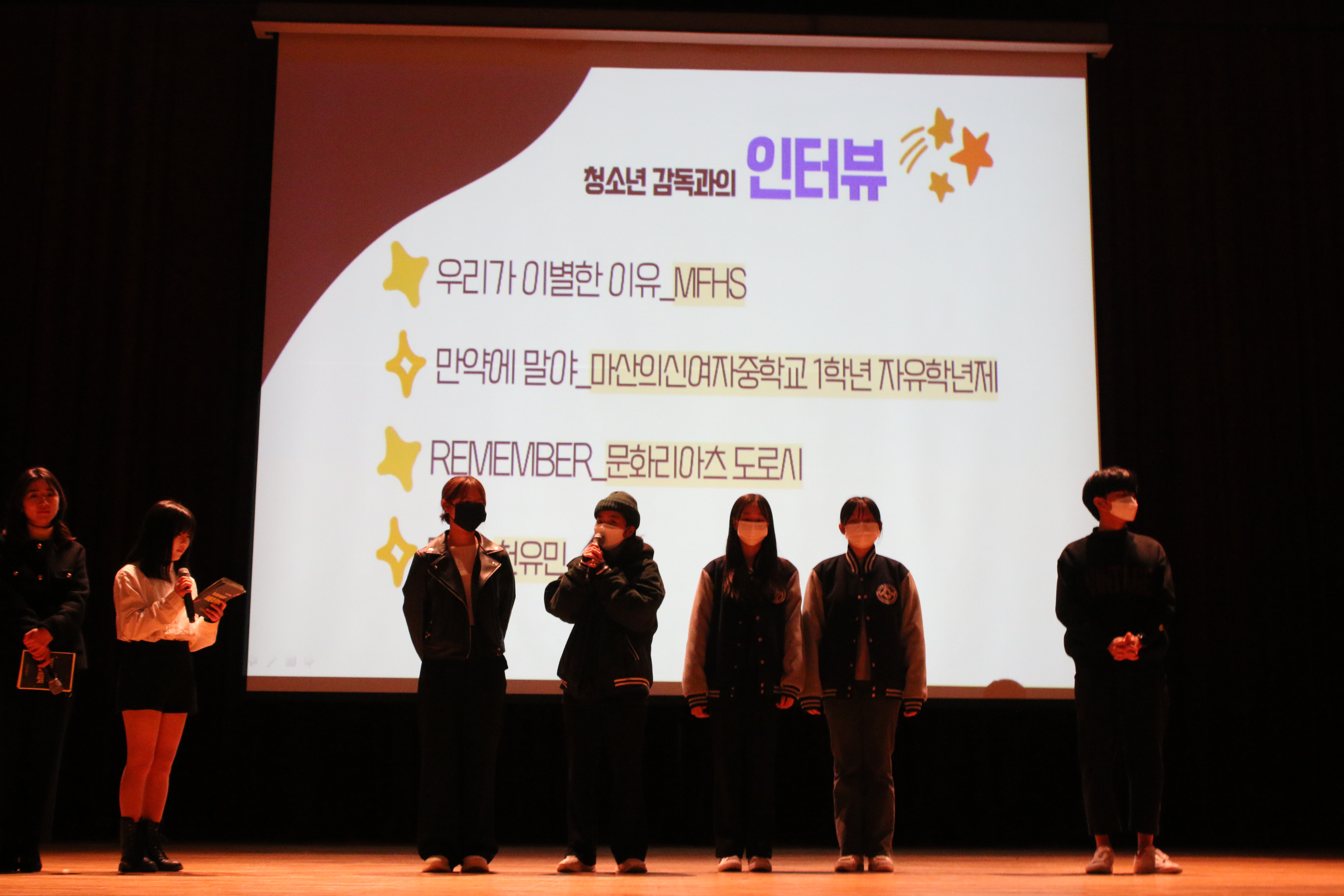 마산청소년문화의집 소속 영상네트워크 청소년들이 기획, 준비한 이번 영상축제는 전국공모를 통해 선정된 본선진출작 8작품의 영상작품 시사회와 함께 청소년 감독들을 직접 만나 이야기도 들어보는 시간이었습니다.