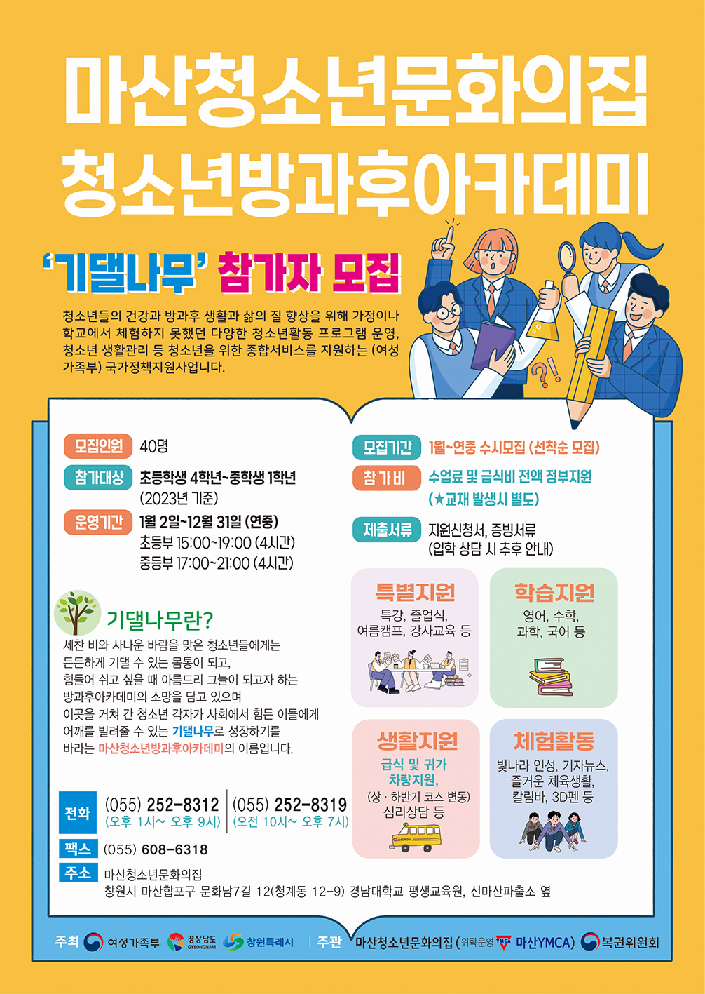 마산청소년방과후아카데미 '기댈나무' 참가자를 모집합니다.