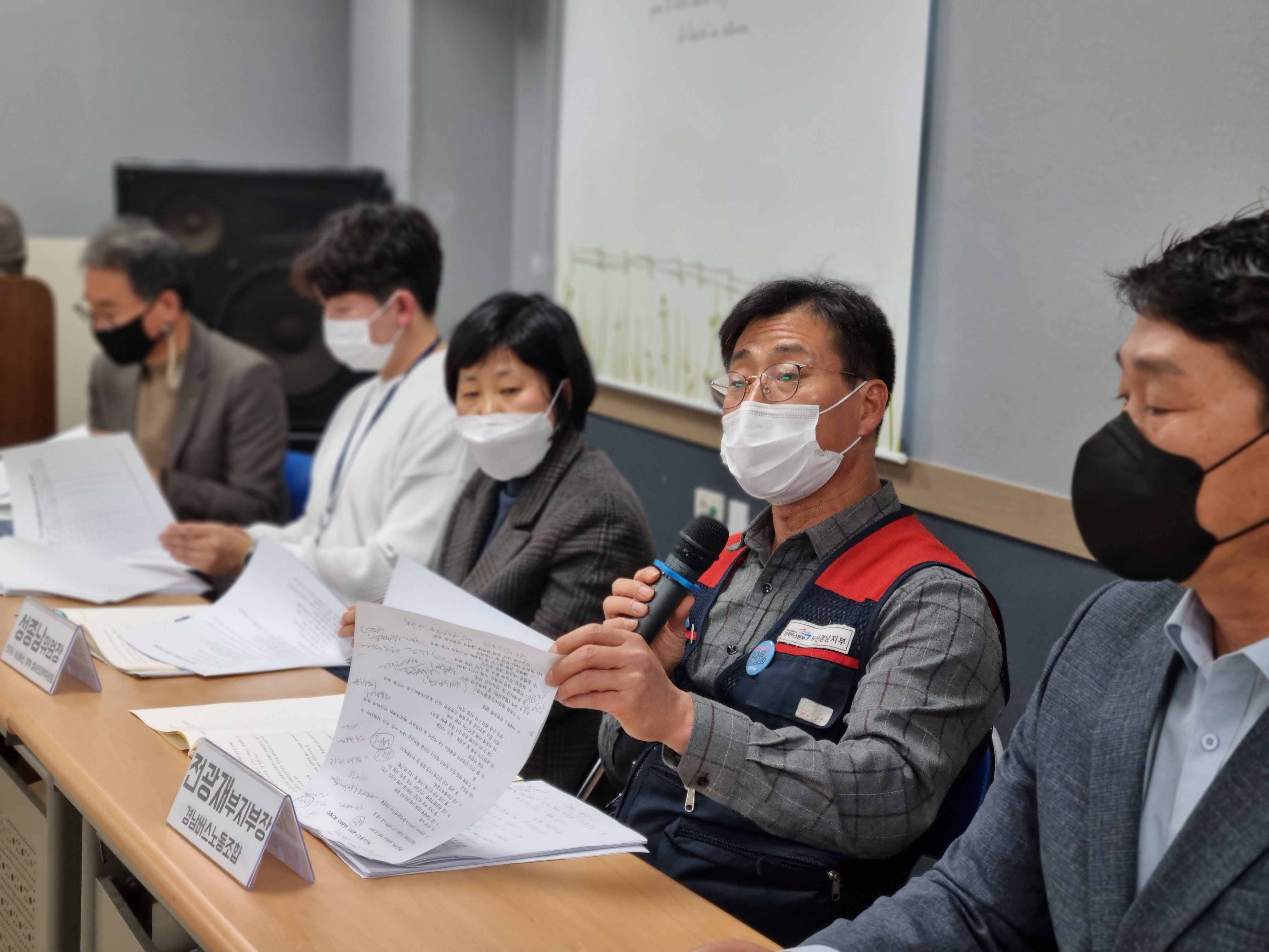 세 번째 발제로는 경남버스노동조합의 전광제 부지부장이 맡았습니다. 버스노동자가 말하는 시내버스 개선방안이라는 주제로 실제 버스를 운행하고 있는 기사의 고충과 상황을 들을 수 있는 시간이었습니다.