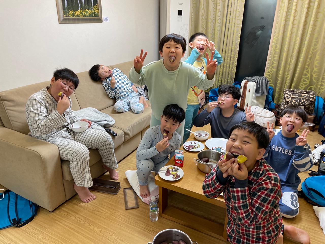 저녁이 되어 숙소에 돌아오면 우리만의 간식시간을 가집니다.