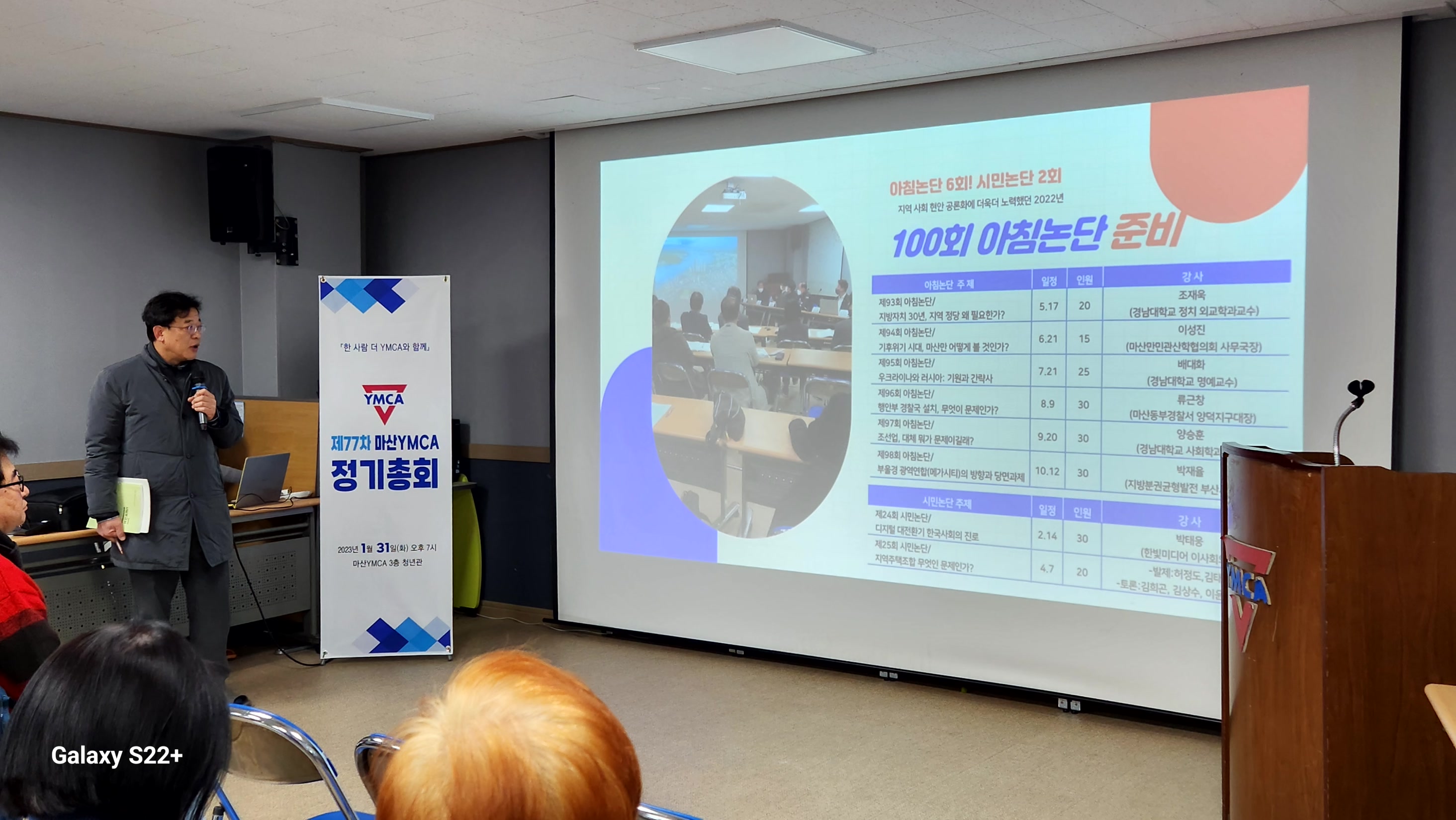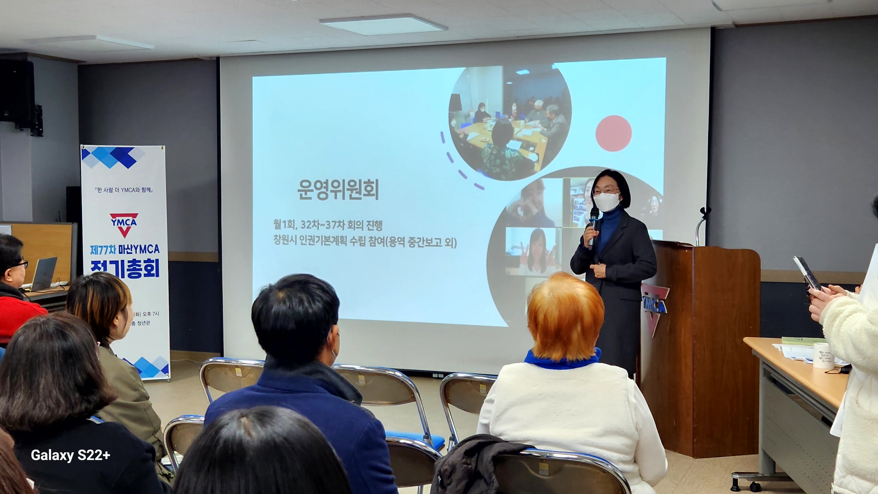 지난 1월 31일(화) 오후 7시부터 마산YMCA 제77차 정기총회가 개최되었습니다. 코로나-19 상황으로 인해 지난 2년간 정기총회를 온라인으로 진행하였기에 3년만에 회관에서 오프라인으로 개최하는 정기총회는 낯섦과 반가움이 함께 했습니다.