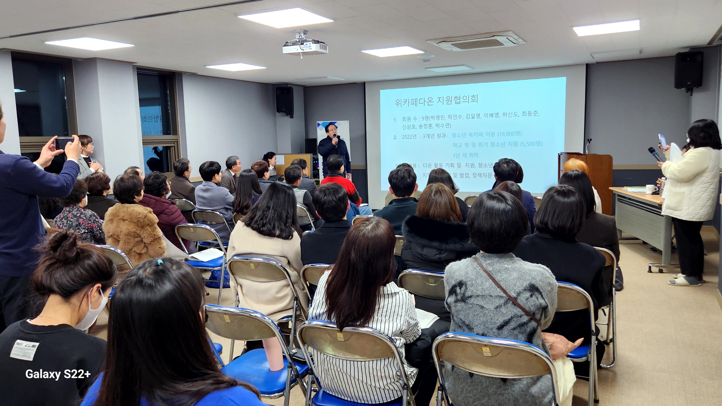 이때까지 사업 보고는 실무자가 발표 하였는데, 올 해는 2022년 사업보고를 각 조직 대표가 발표하였습니다. ppt 3장으로 2-3분 요약하여 보고를 진행하였습니다. 실무자가 진행하는 것보다 시간이 조금 더 소요되기는 하였지만, 각 조직에서 활동하는 회원이 발표를 하니 지루함도 없고 오히려 활동 보고 내용이 귀에 더 잘 들렸습니다.