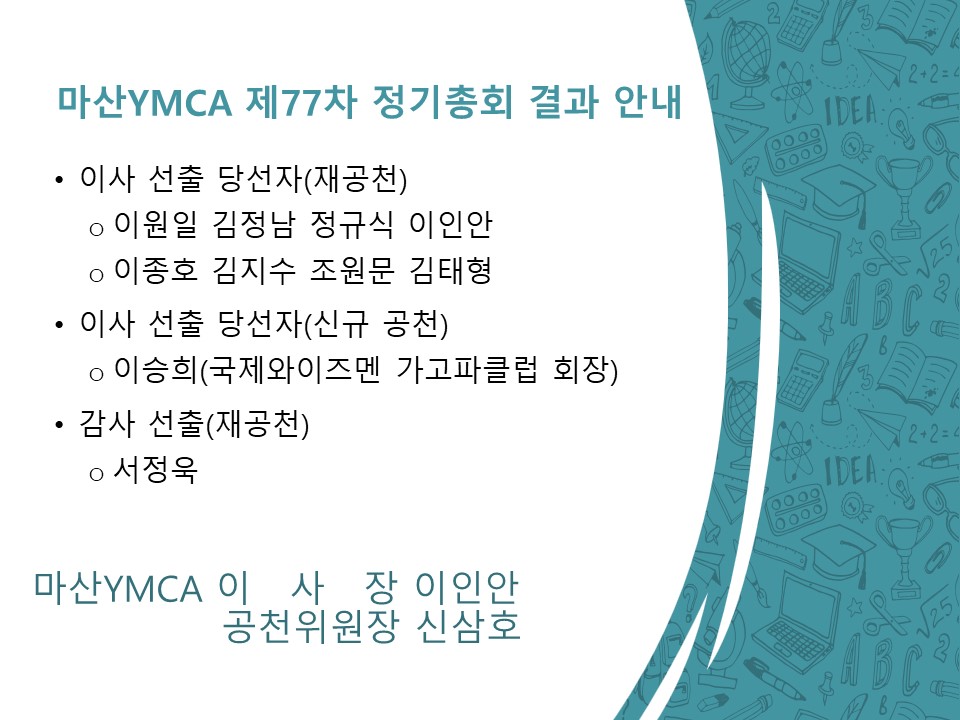 마산YMCA 제77차 정기총회에 참석해주신 총회원 여러분 감사합니다.