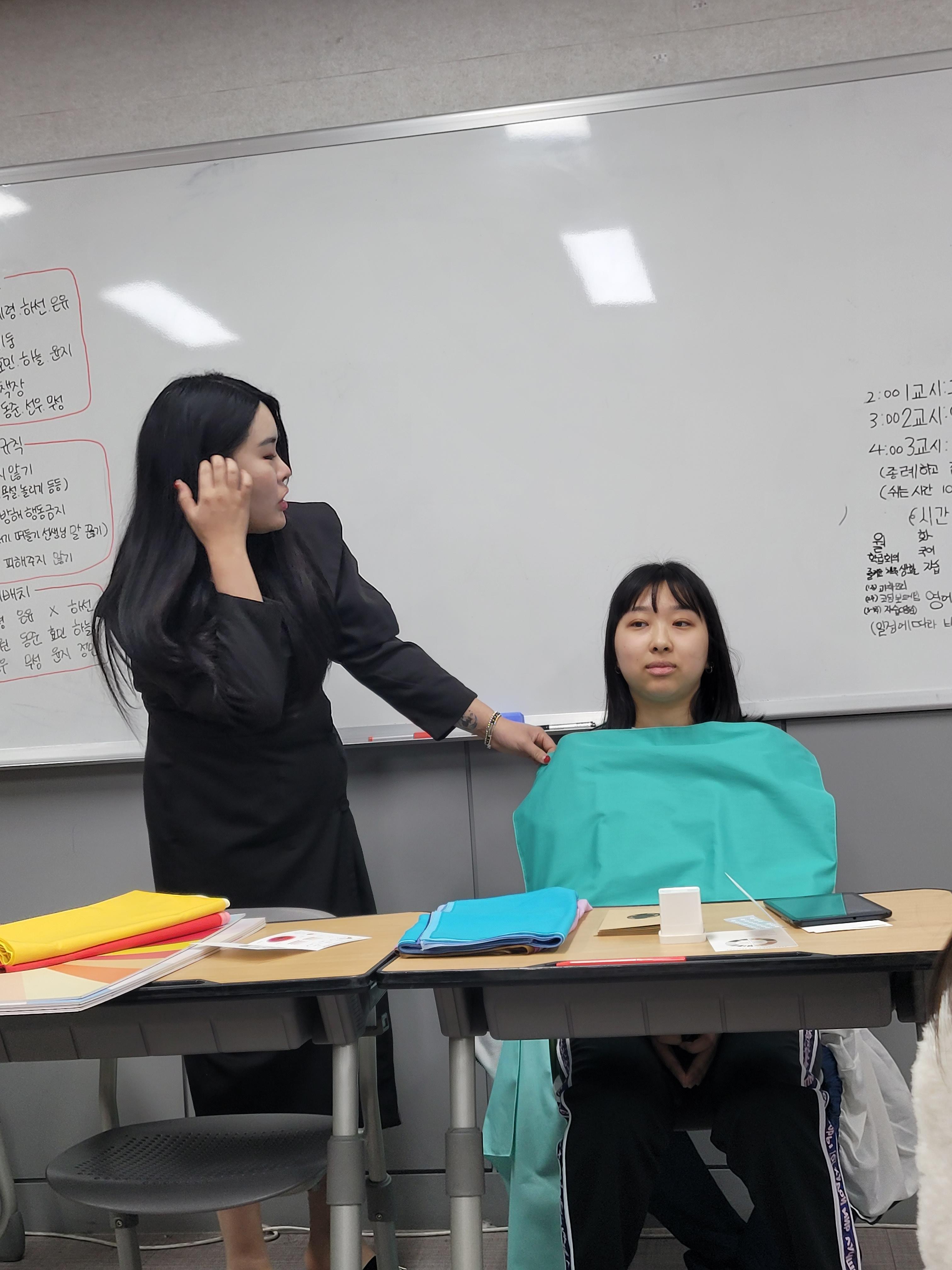그리고 본인들이 자주사용하는 화장품들을 들고와서 선생님께 피드백을 받는 시간도 가졌습니다.