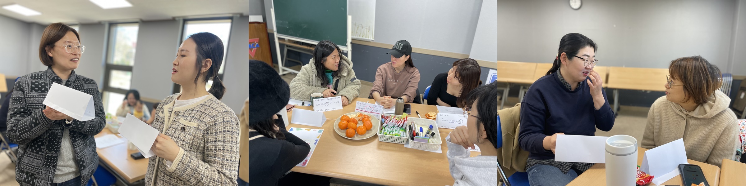 그런데 우리 촛불님들 정말 대단한 것 같습니다. 목적문 힌트를 주기 위한 많은 게임을 준비했는데도 2가지만 쓰고 완성해버립니다. 목적문 만들기로 오전 프로그램을 정리하고 함께 만찬의 시간을 가졌습니다. 특별한 것 없는 식사 메뉴였지만, 우리 촛불님들은 풍성한 수다로 특별한 만찬을 만듭니다. 웃고 떠드는 사이 식사 시간을 후딱 지나가 버렸습니다.