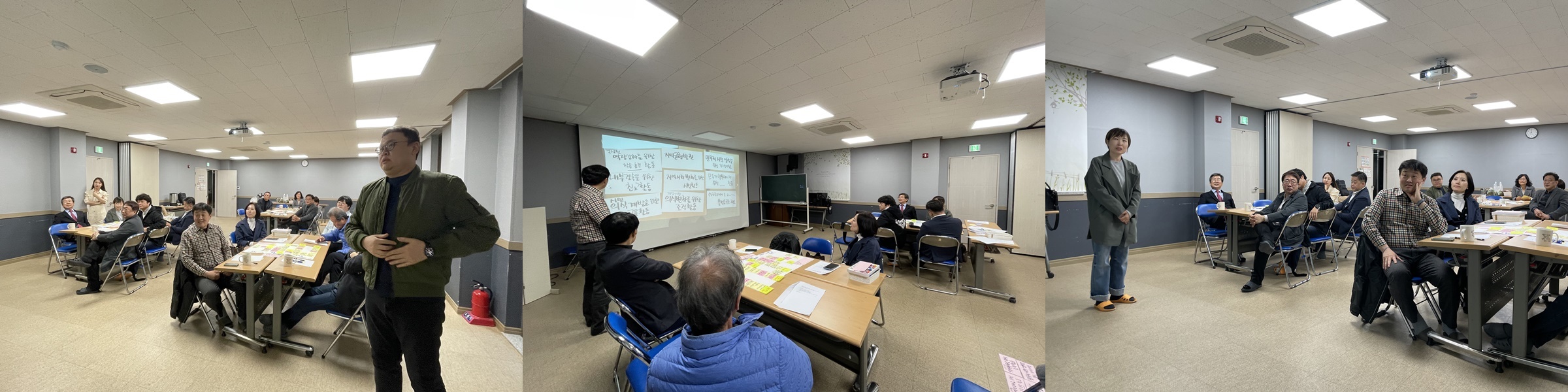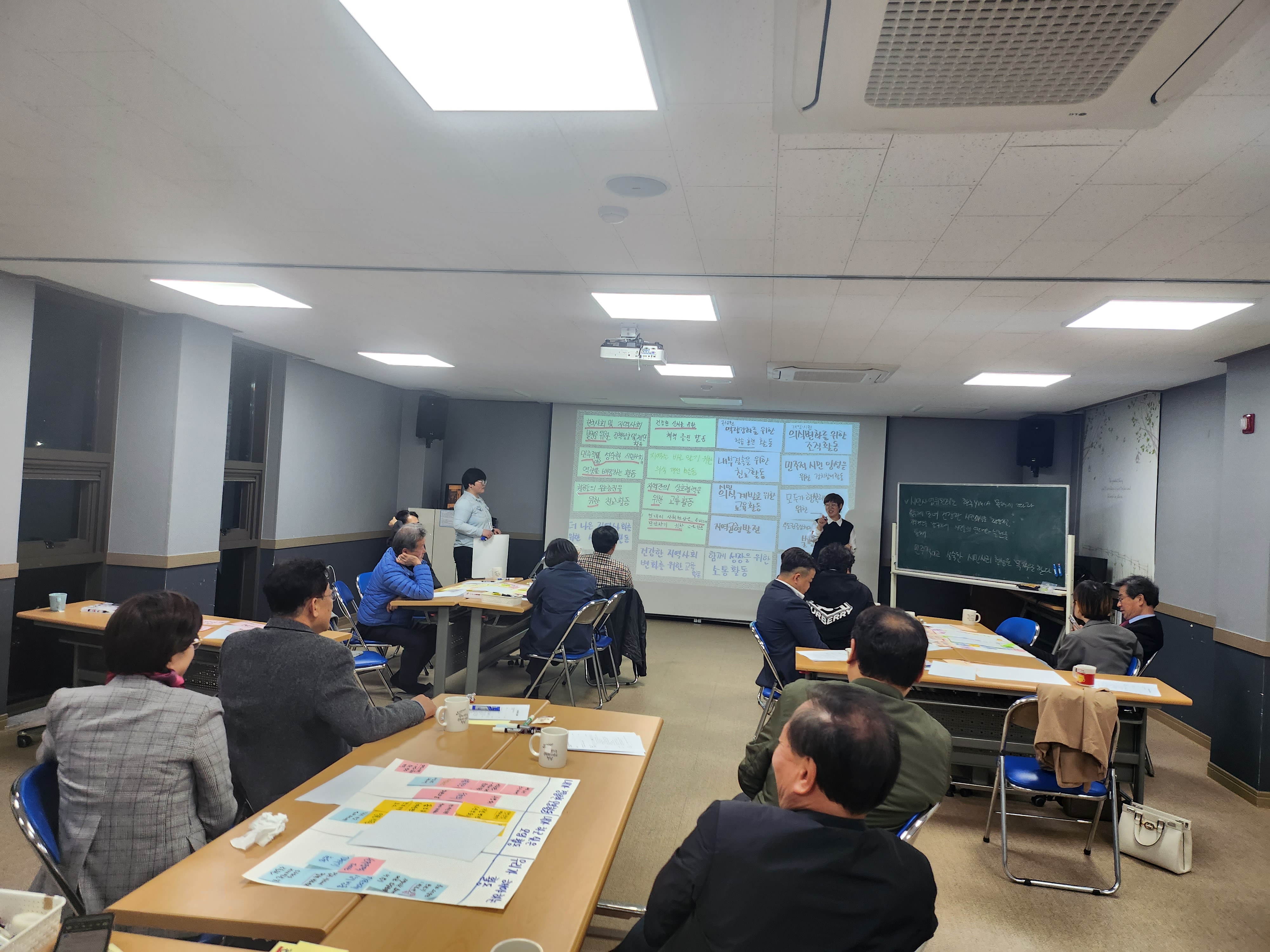 시민사업위원회 목적문 만들기에 성공하였습니다. ‘한국YMCA 목적에 따라’라고 시작하는 위원회 목적문을 2시간에 걸려 만들었습니다. 처음 2시간 정도 소요된다고 했을 때 다들 난색을 표했는데, 막상 시작하니 모두들 열정적으로 참여했고 시간이 늦어지는데도 끝까지 완성하고 가자며 의지를 불태우기도 했습니다.