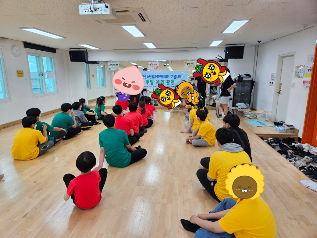 특별히 이번 주말체험활동에서는 준비과정에서부터 청소년들의 참여가 있었는데요! 체육대회 이름 짓기 응모 통해 초등부 조** 청소년과 중등부 명** 청소년의 아이디어를 합쳐 “기댈나무의 우당탕탕 체육대회인가 봄”으로 준비할 수 있었고, 각 팀장과 팀명 또한 청소년들의 회의를 통해 정하게 되었습니다!
