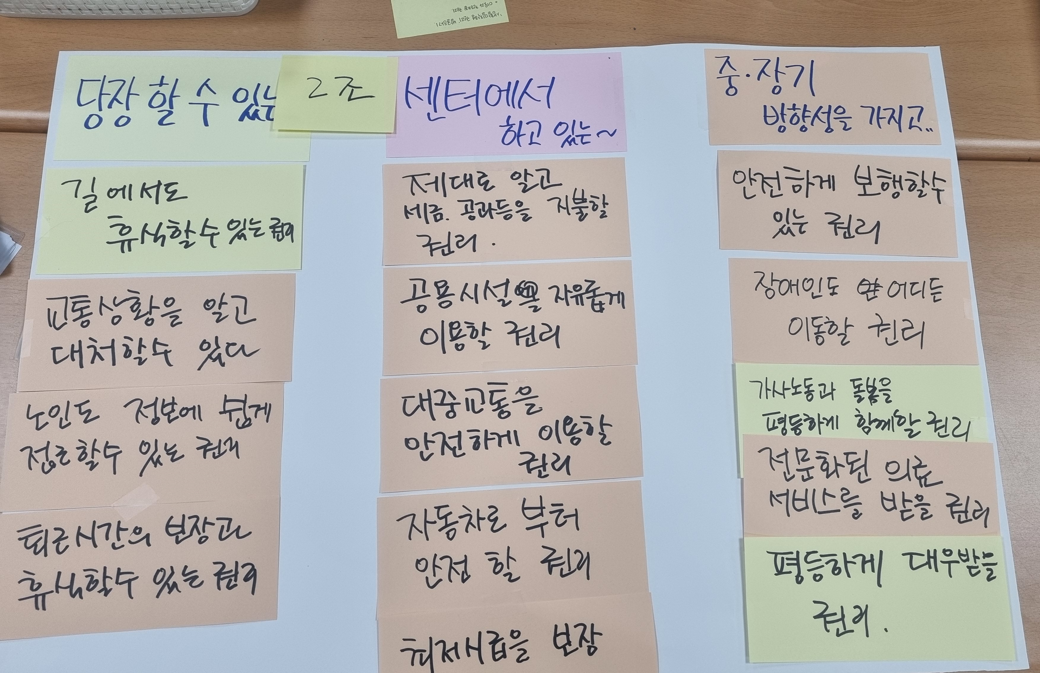 짧고 굵게 축하의 시간을 가진 뒤 본격적으로 '생활밀착형 권리' 를 발굴하기 위해 머리를 맞대었습니다. 가장 중요한 것은 나의 이야기, 우리의 이야기를 하는 것이었는데요. 내가 경험한 나의 불편한 일상, 또는 나와 지역사회의 불편한, 부당한, 불합리한 일상을 하나하나 꺼내고 나누었습니다.