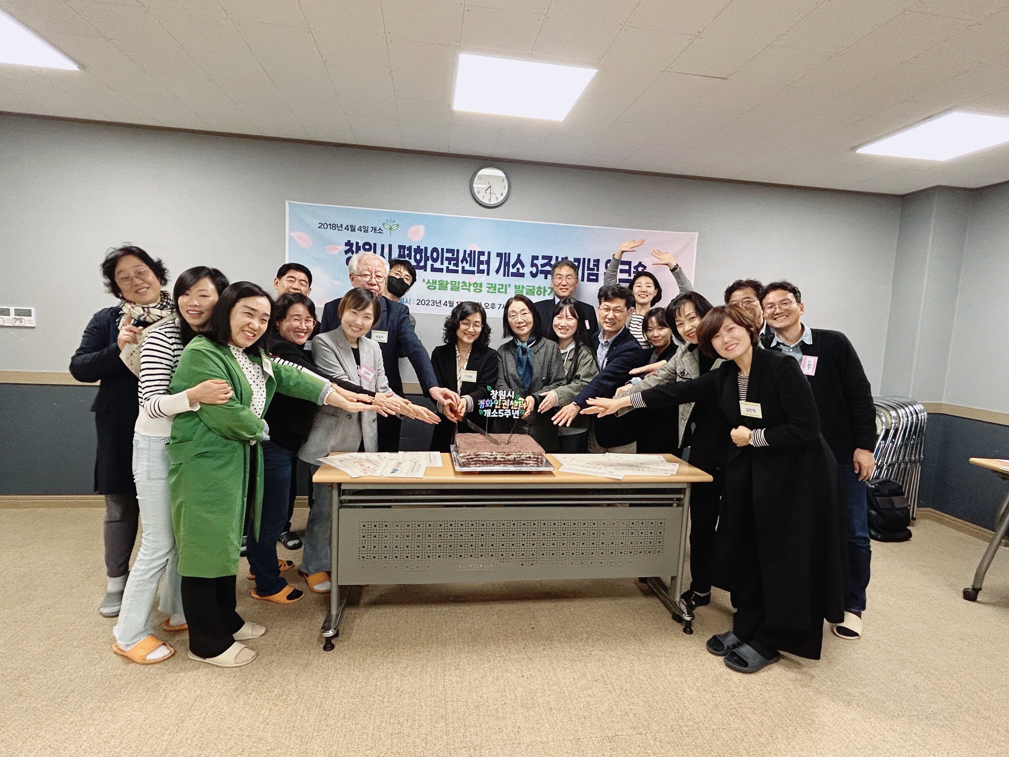 2018년 4월 4일 개소 이후 교육, 캠페인, 실태조사 등 다양한 활동을 이어왔습니다. 모두 함께 해주신 '사람'들 덕분이었는데요. 축하 떡을 나누기 전, 우리에게 창원시 평화인권센터는 과연 무엇인지 큰 소리로 함께 나누는 시간을 가졌습니다. 하나, 하나 글로 적어보려다 동영상을 꼭 재생해보시길 추천합니다!