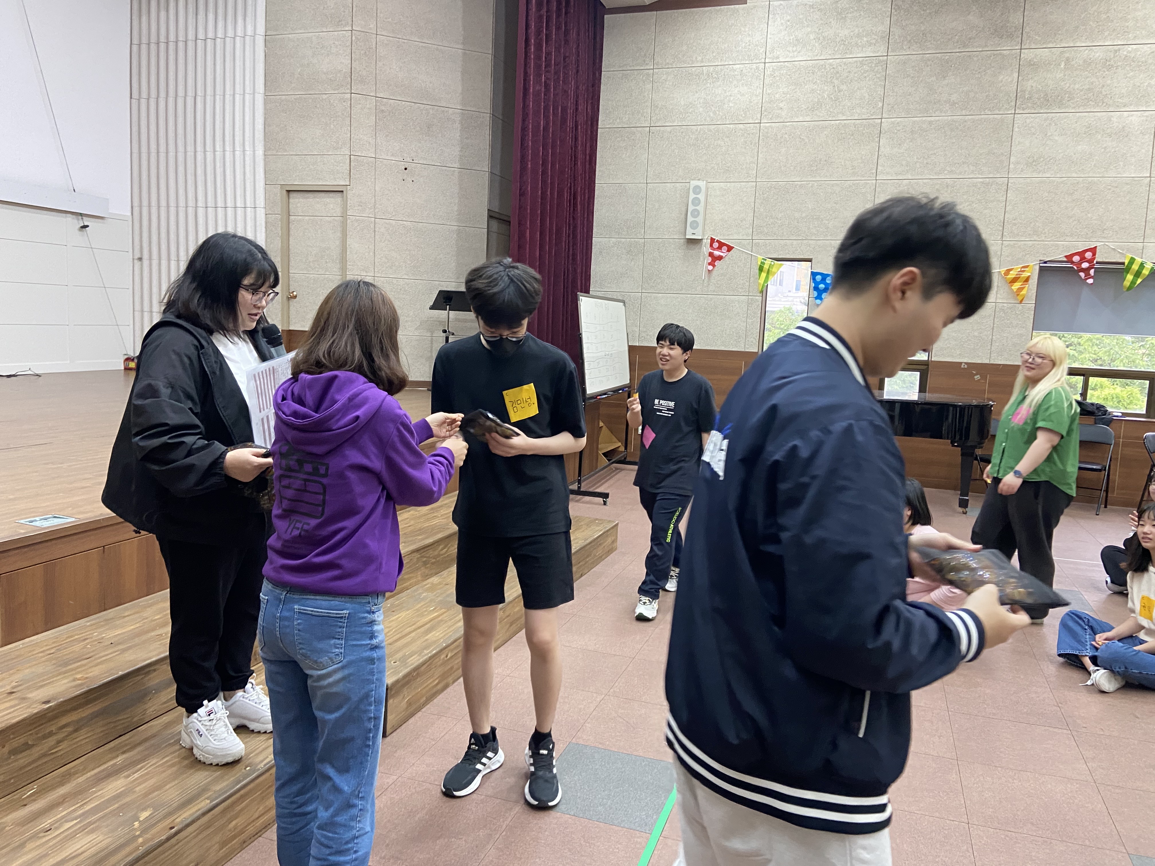종이를 찾기 위해 열심히 움직이던 회원들! 못찾은 회원이 있으면 알려주고, 같이 찾아주는 모습을 보여주었습니다!