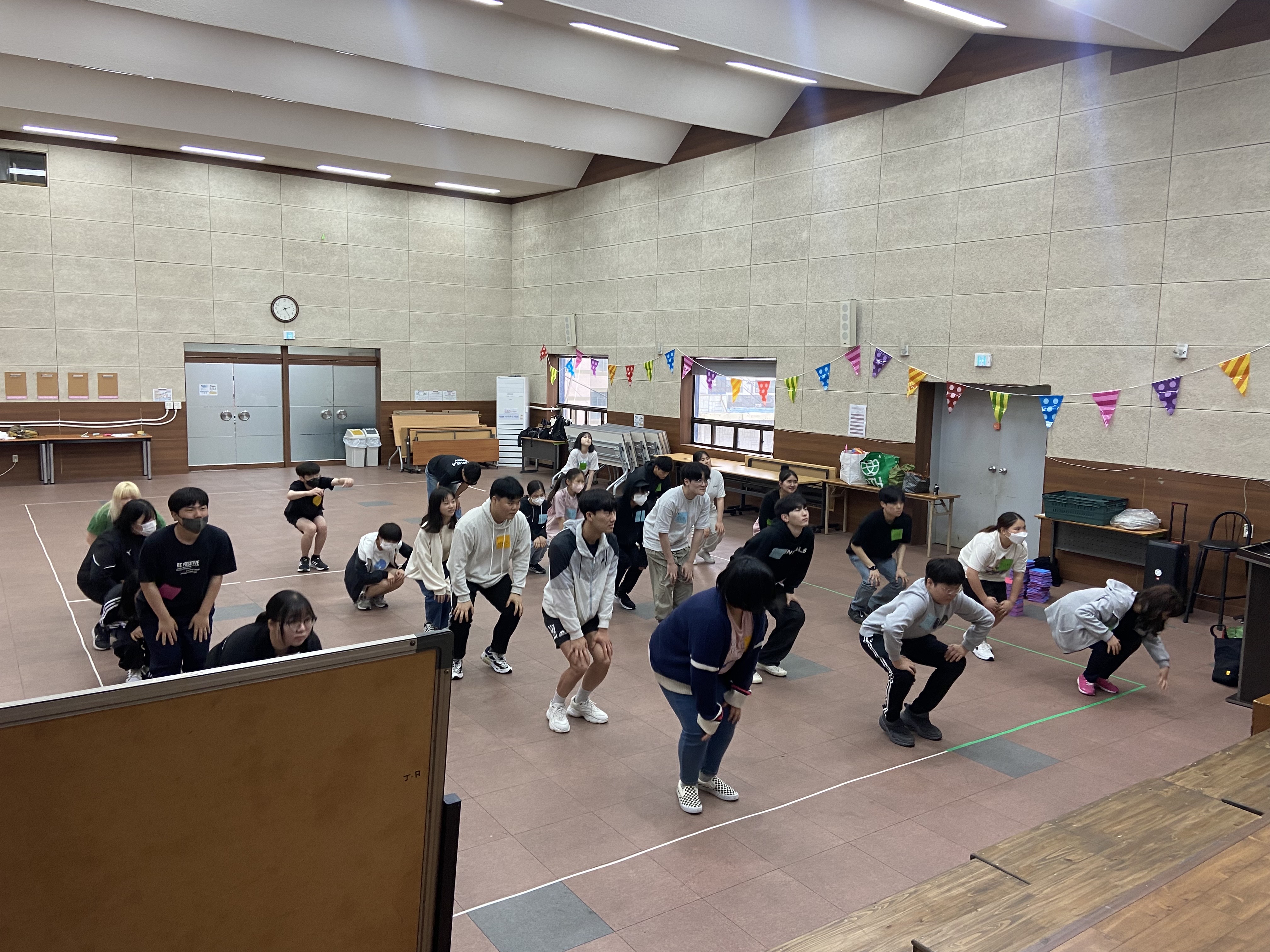 전 국민이 사랑하는 '국민체조'로 몸을 풀고, 팀을 나누어 팀 내 조장과 구호를 정해보았습니다!