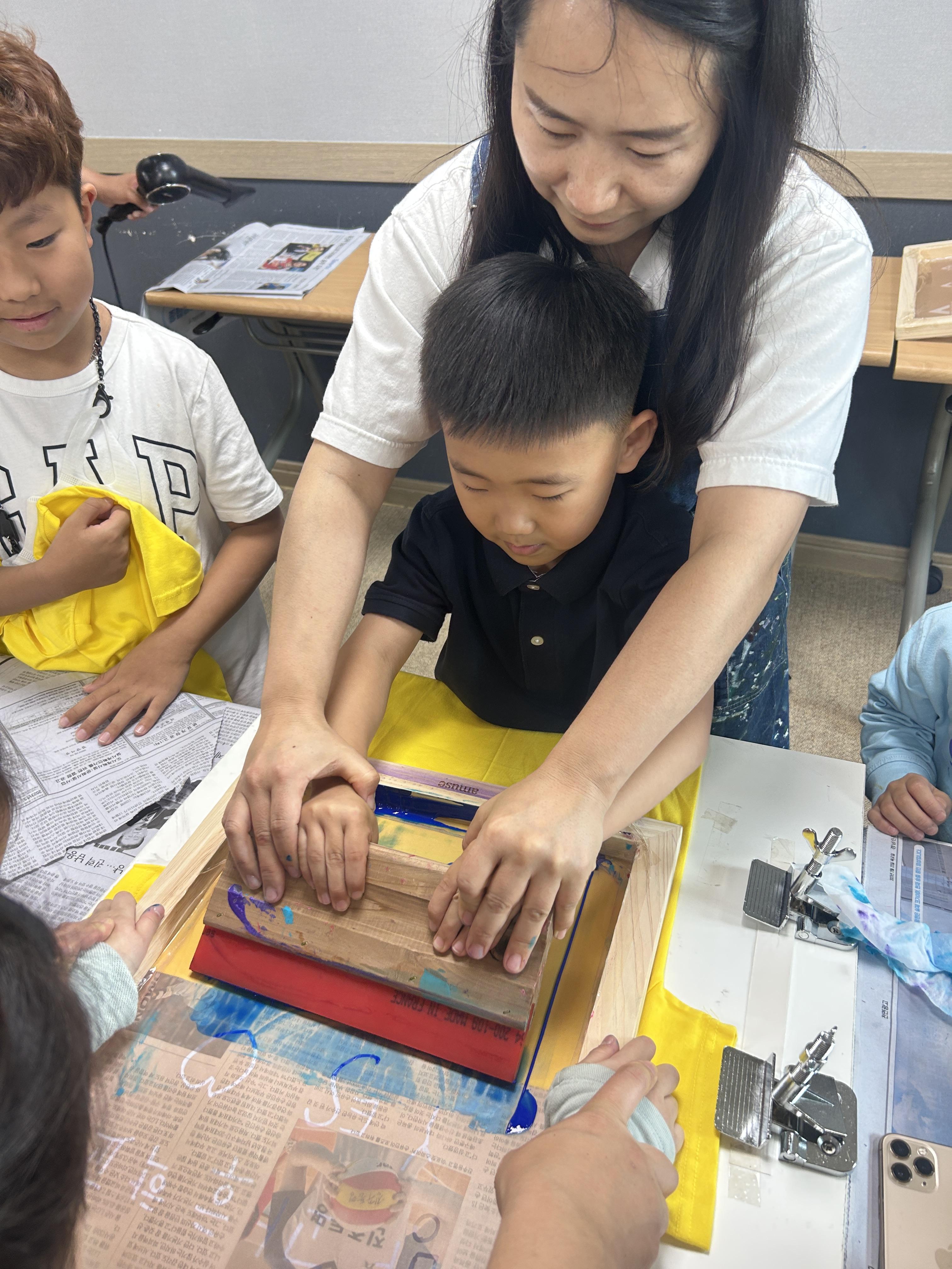 그래도 차근차근 노래를 연습했습니다. 우리 합창단은 생활 속 노래와 함께하는 아름나라이니깐요. 자유놀이 시간에 계속 흘러나오는 노래들 그리고 하원 전 한번씩 불러보기로 서서히 노래와 하나가되는 한창단원이였습니다. 공연을 위해 모두의 손글씨가 담긴 티셔츠도 실크스크린으로 직접 만들었습니다.