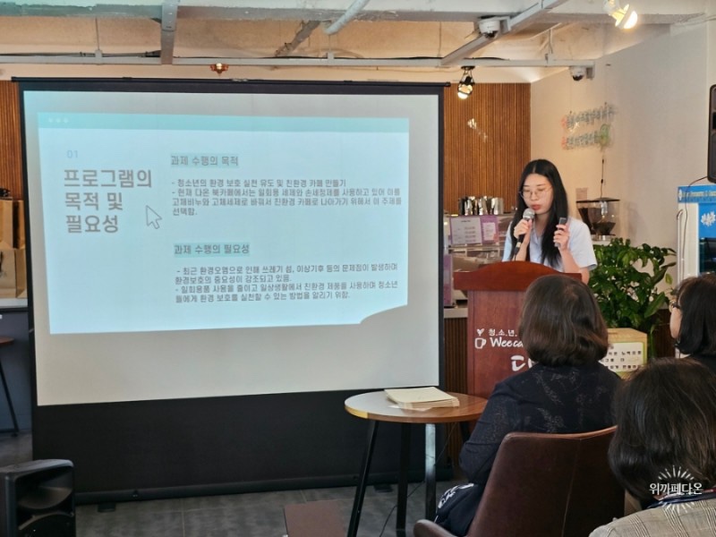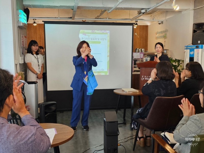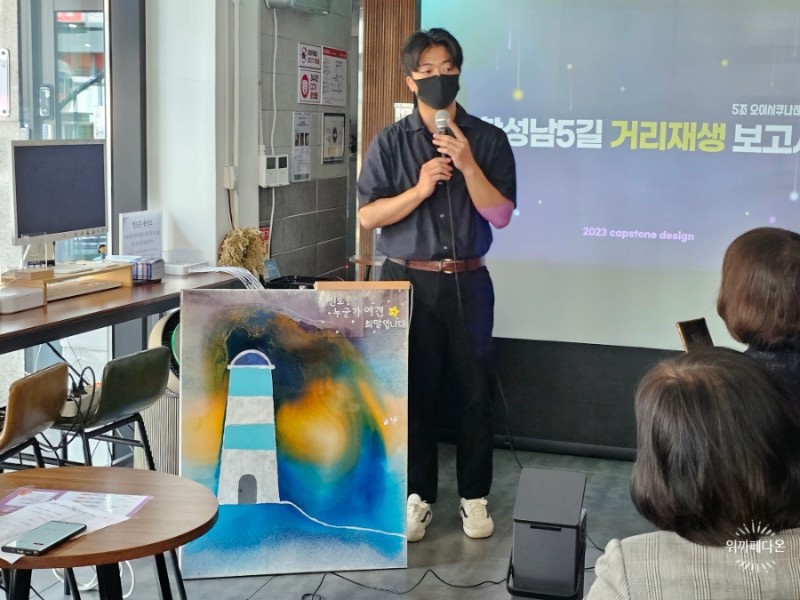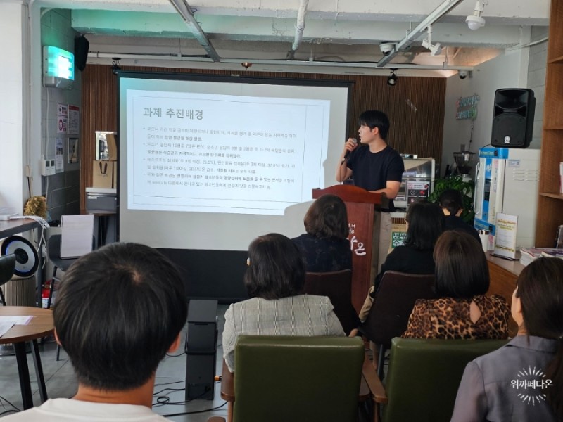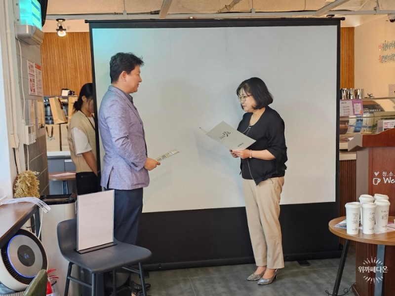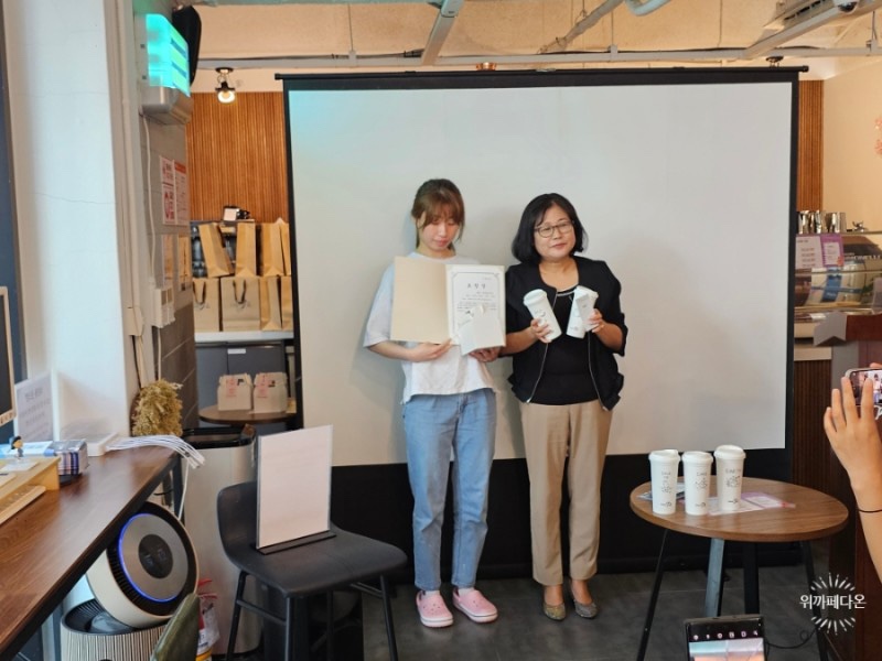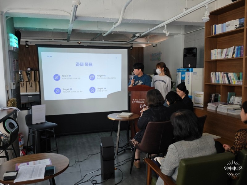 2023년 6월 23일 10시 위카페다온에서 그동안의 협력 사업 내용을 공유하고 그 공로를 인정하기 위해 경남대 캡스톤 디자인 팀의 발표와 시상식이 있었습니다.