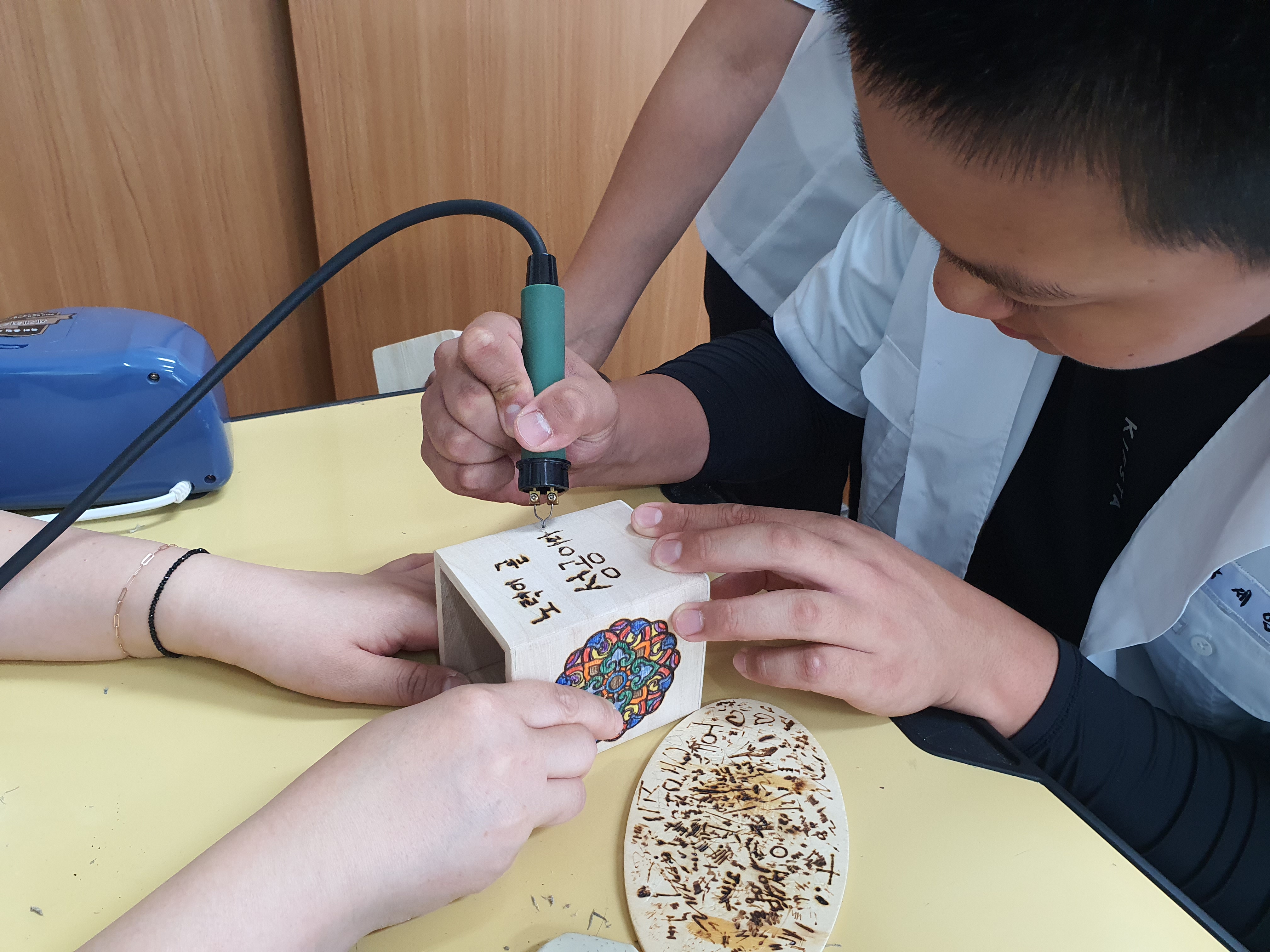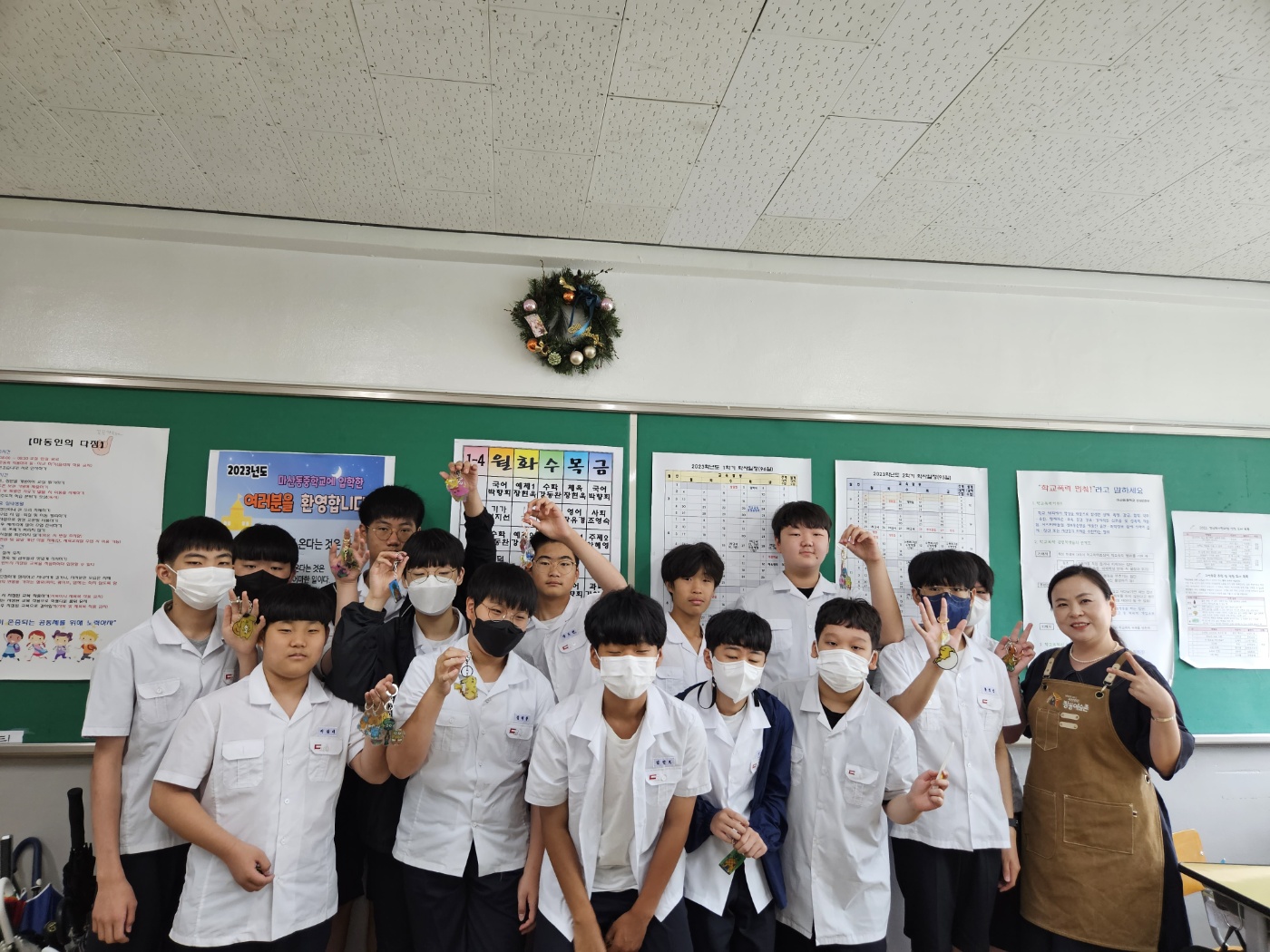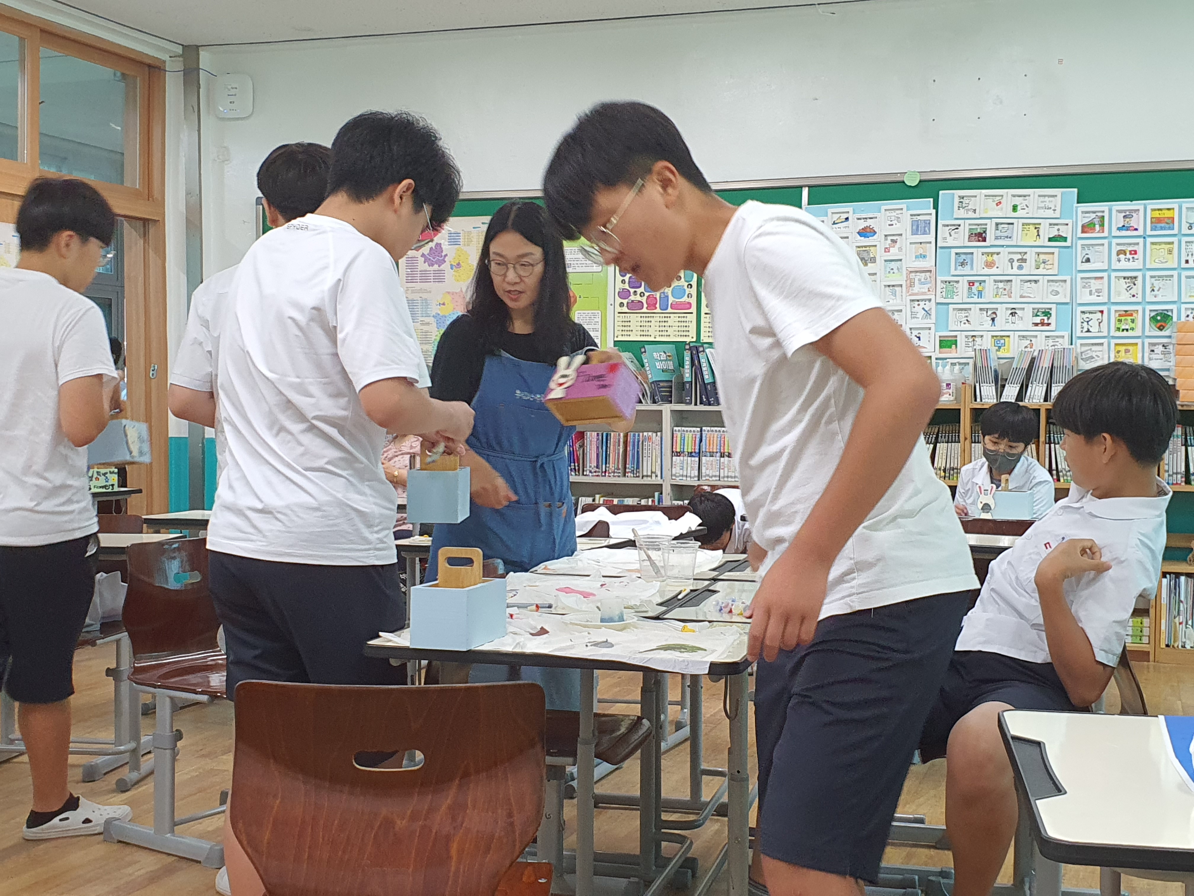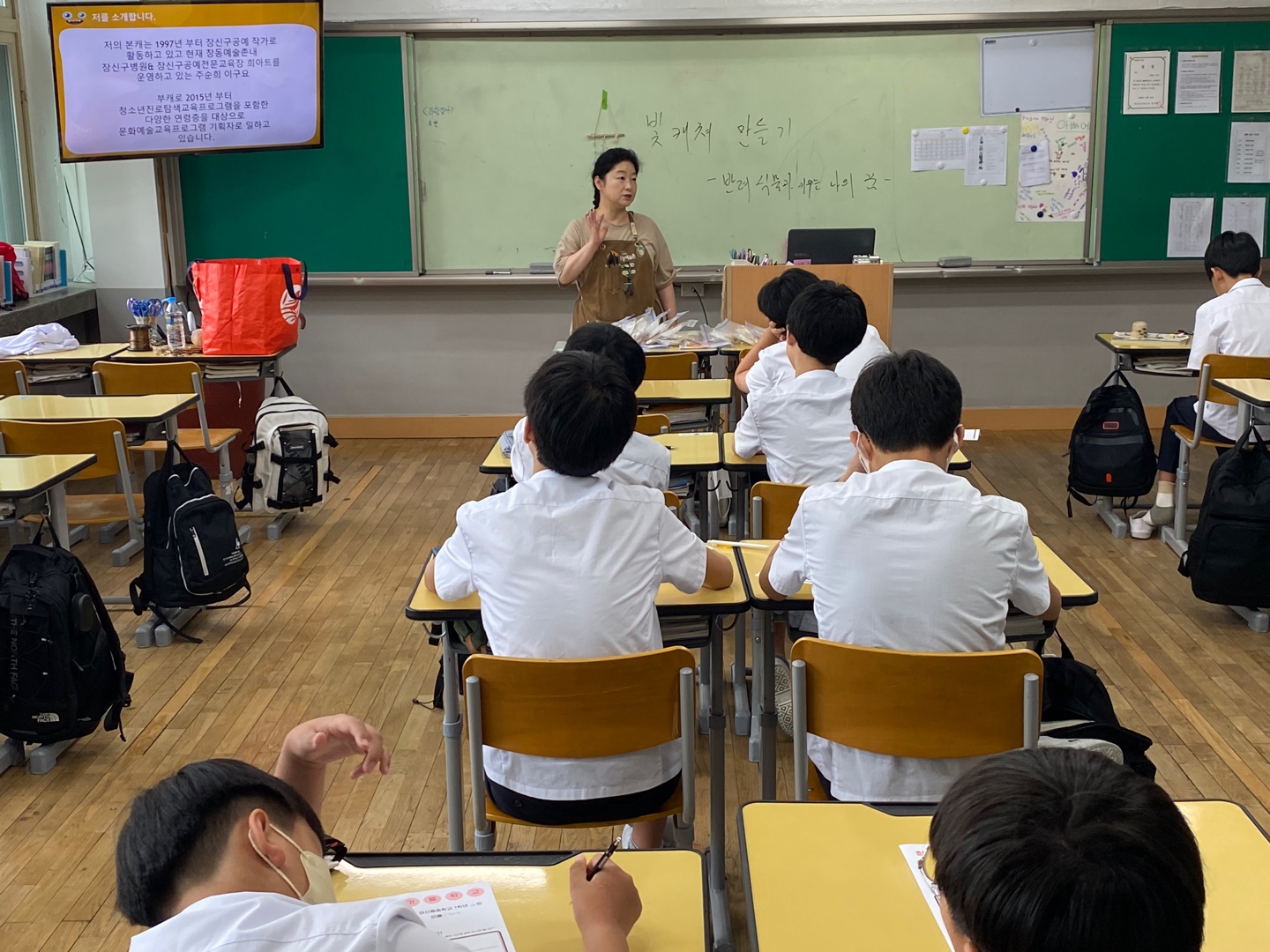 보통.. 남학교를 가면 벌써 다했다라는 이야기가 나오는데, 여긴 청소년들이 너무 조용하고 집중력이 좋다며 이야기 해주셨습니다! 2시간 동안 청소년들이 정말 꼼꼼하게 집중력있게 참여하여 자신이 원하는 체험활동작품이 완성되었습니다.