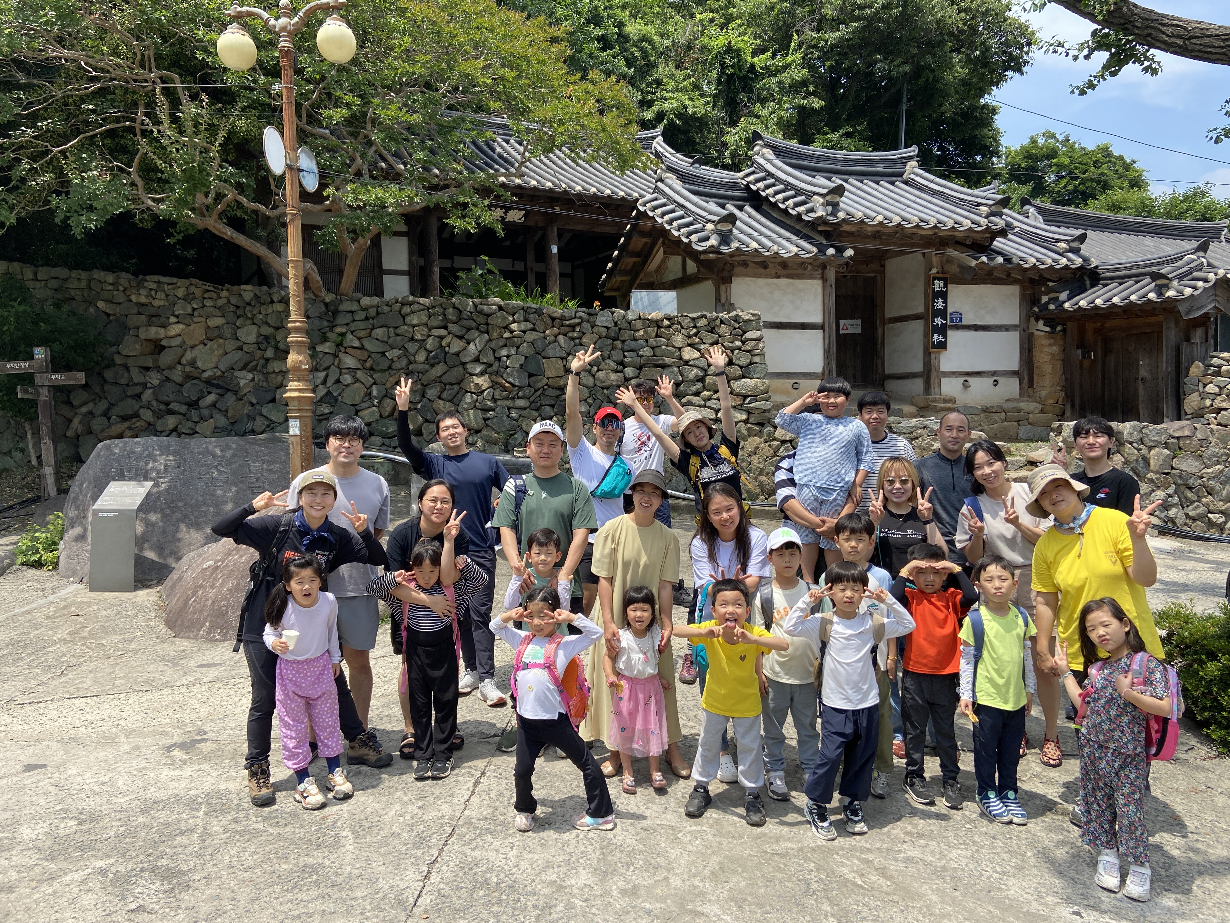 계곡의 돌다리를 만나서는 1,2,3번 각각 포즈를 취해 사진에 담아 보기도 합니다. 나무와 햇살, 흙의 힘을 받은 아이들의 얼굴은 고됨보다는 빛이 나네요. 예정된 산행은 3시간 이였지만 총 4시간의 산행을 마치고 서원곡 관해정에서 부모님을 만날때 어깨가 하늘까지 솟아 올라있네요.