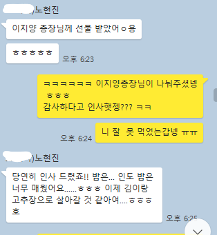 그리고 저녁시간에 양산YMCA 이지양총장님께서 한국에서 들고 온 김과 고추장을 주셨는데, 그렇게 반가울 수가 없었습니다. 인도의 특유의 향으로 인해 힘들어 했던 저에게는 한 줄기의 빛이였습니다.
