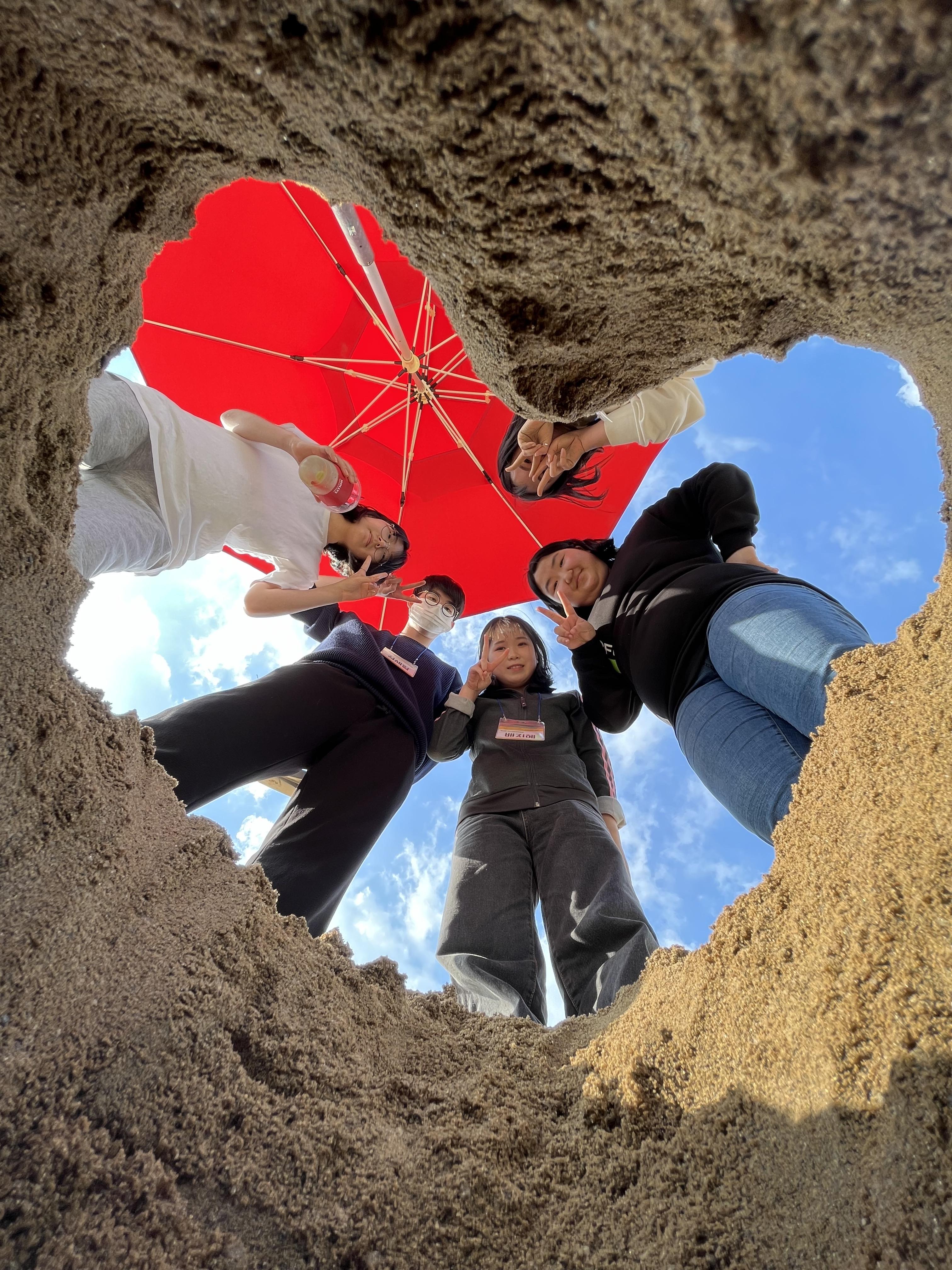 그리고 여름에 핫했던 모래하트샷도 찍었습니다! 열심히 모래를 하트모양으로 파야 했는데