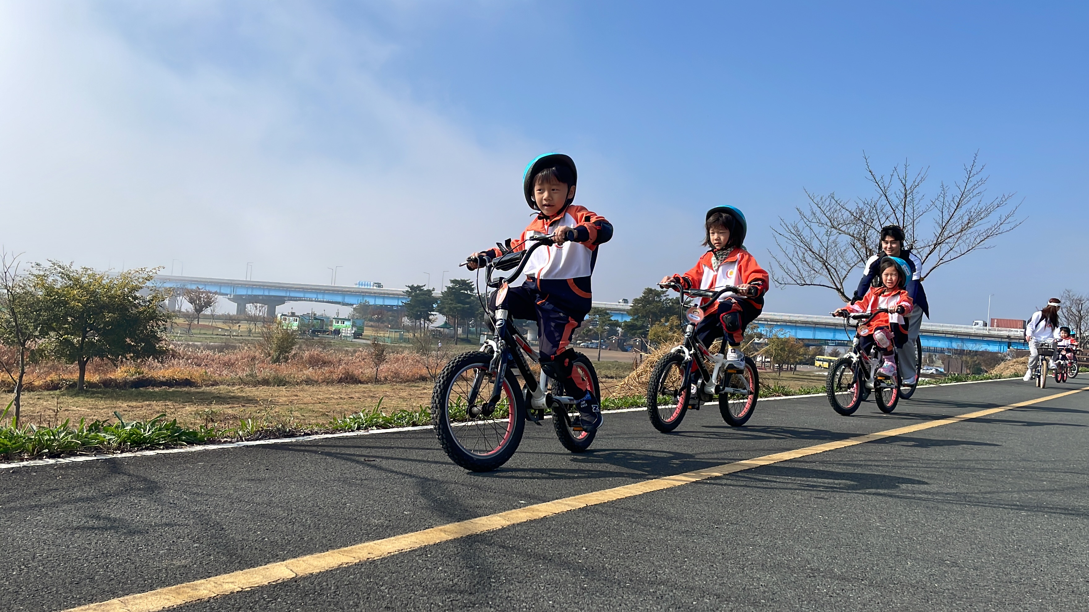 아기스포츠단 7살 아이들은 멋지고 힘든 도전을 많이 합니다. 힘든걸 이겨내는 과정에서 아이들의 성취감과 자존감은 말과 글로는 얻을 수 없기 때문입니다. 7세가 되면서 꾸준하게 배웠던 두발자전거를 가지고 낙동강 자전거길을 달리는 순간! 그 희열! 본인이 해냈다는 그 뿌듯함! 우리 모두가 함께 했을 때의 몇배나 큰 기쁨을 아이들이 고스란히 느꼈을 것입니다.