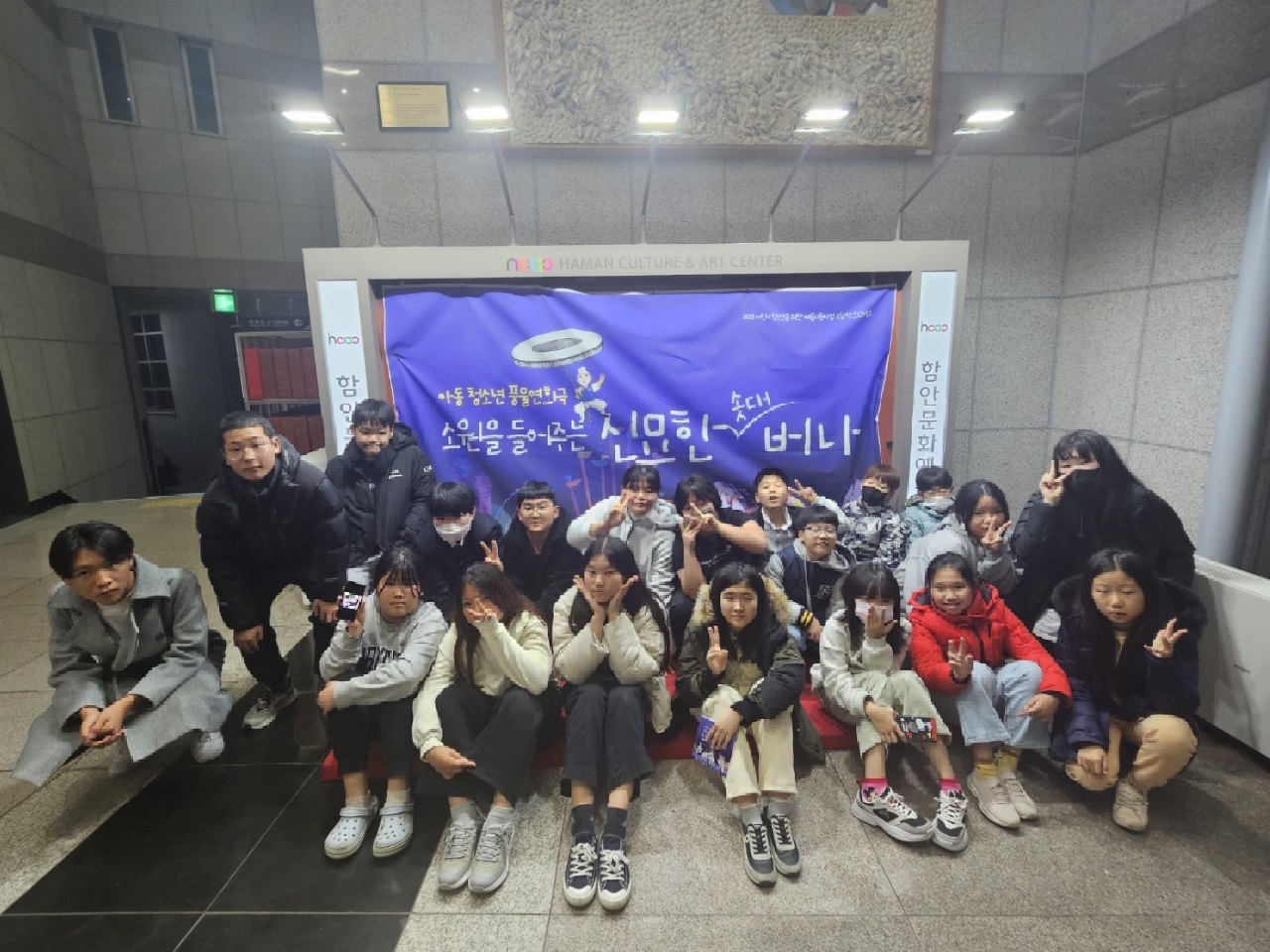 23년 11월 29일 수요일 저녁 6시 30분 기댈나무 친구들이 함안문화예술회관에서 아동 청소년 풍물연희극 '소원을 들어주는 신묘한 솟대 버나' 공연을 관람하였다.