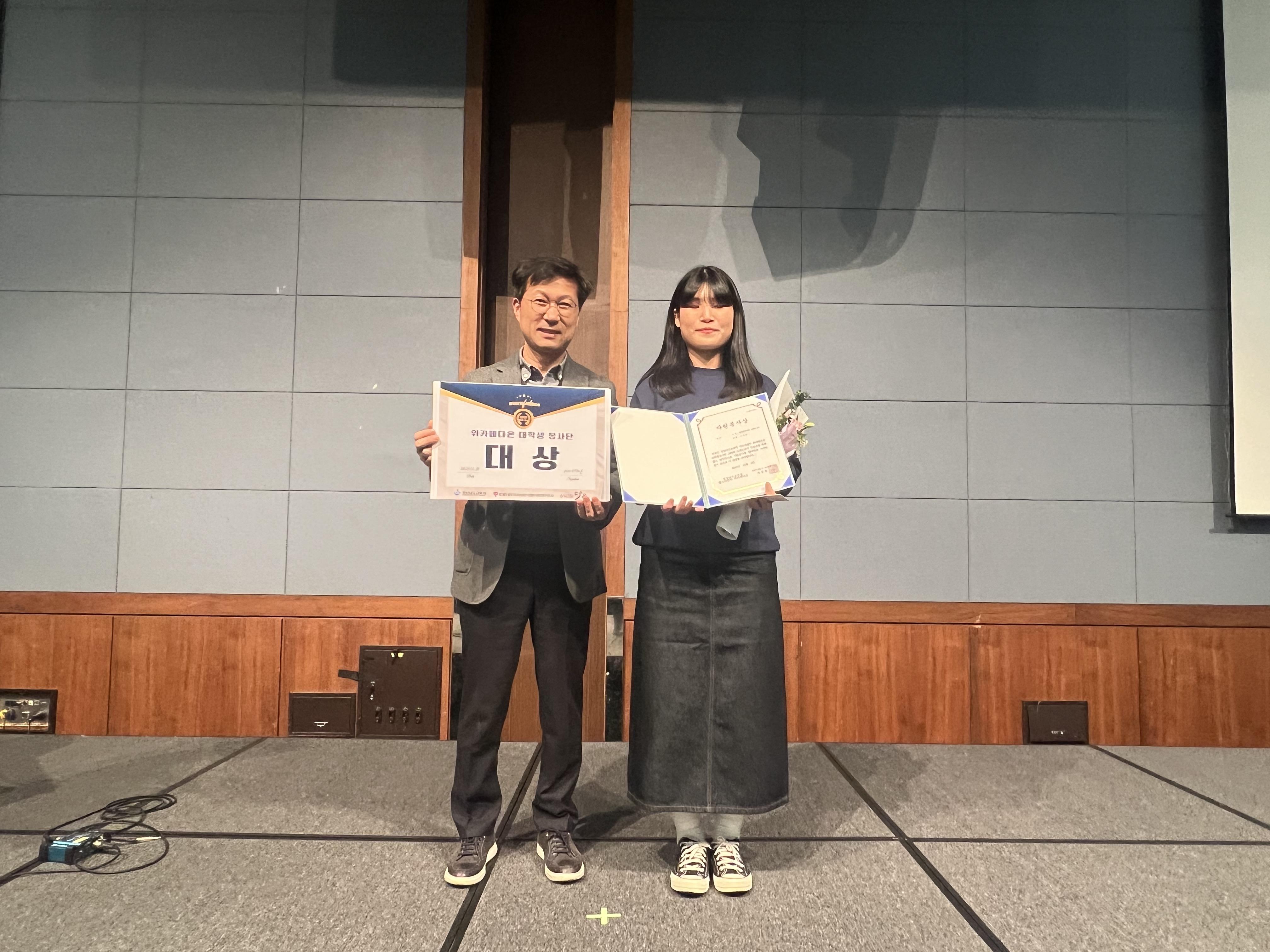 대망의 대상 수상자는 총 봉사시간 168시간을 활동해주신 오승민 선생님으로 그리다 임원진, 그리다가 그린데이 등 청소년의 발전에 큰 기여를 해주셨습니다. 그리다 대상은 이인안 이사장님께서 직접 수여해주셨습니다.