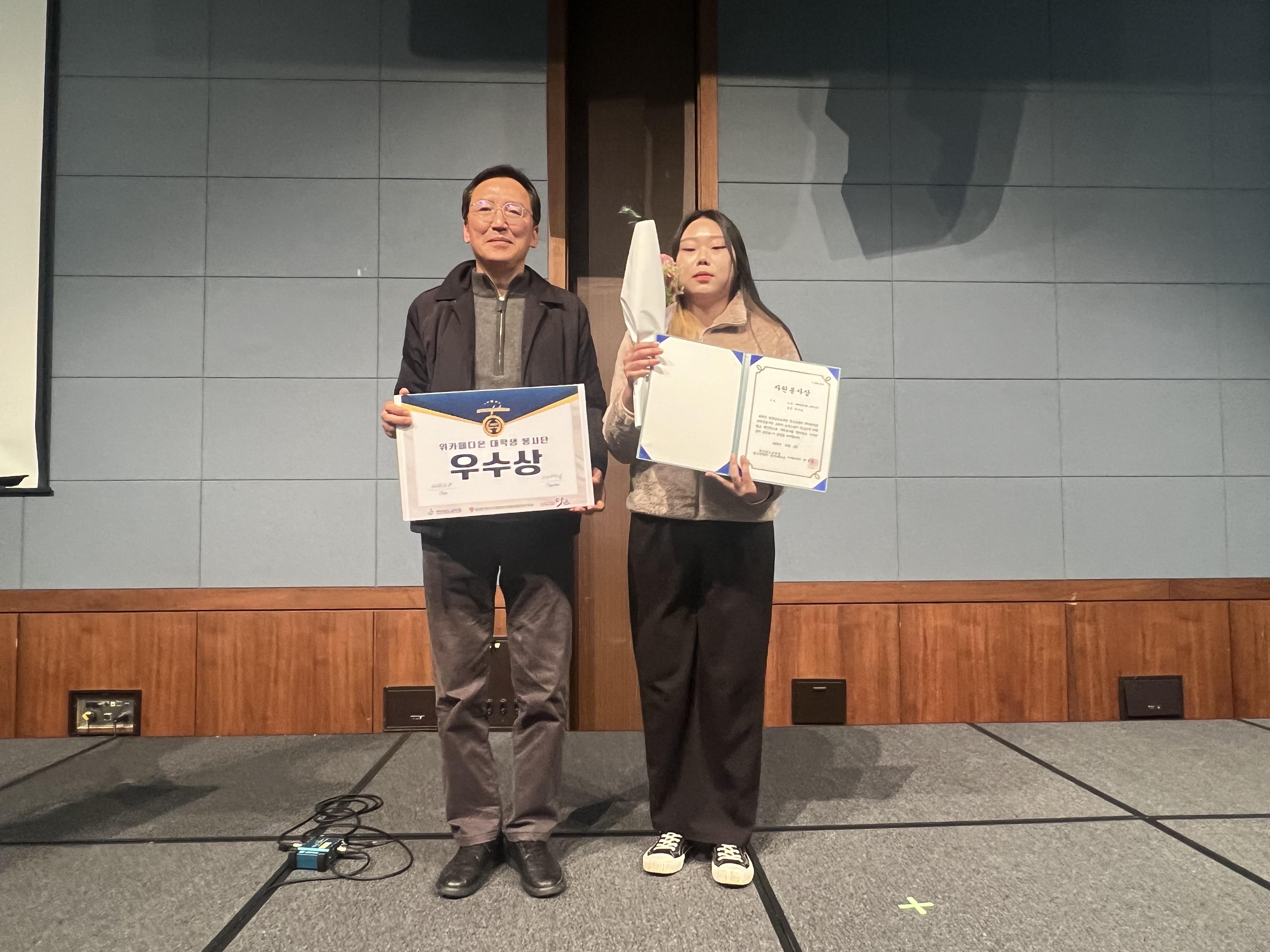 총 봉사시간 162시간을 활동해주신 김나영 선생님과 120시간을 활동해주신 전효정 선생님이 수상하였습니다.