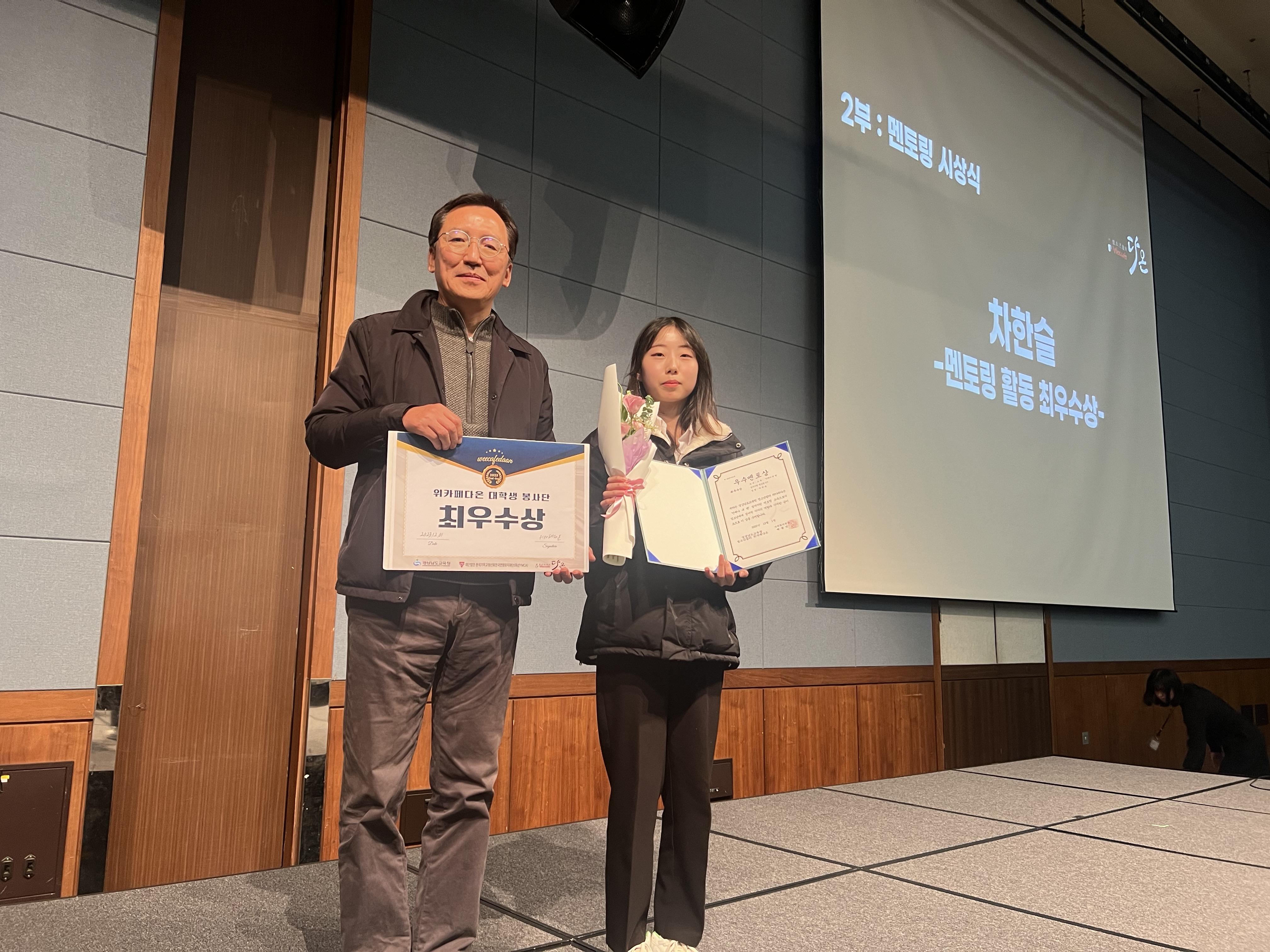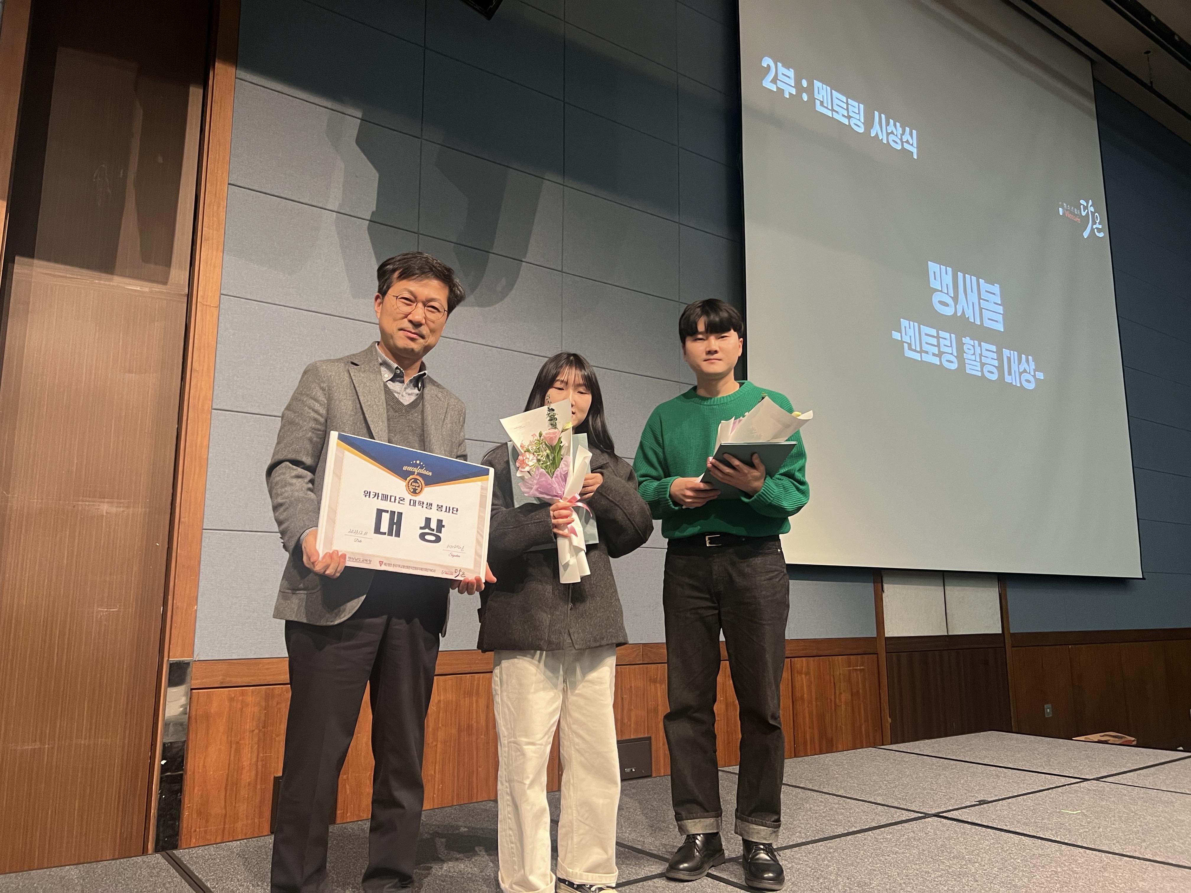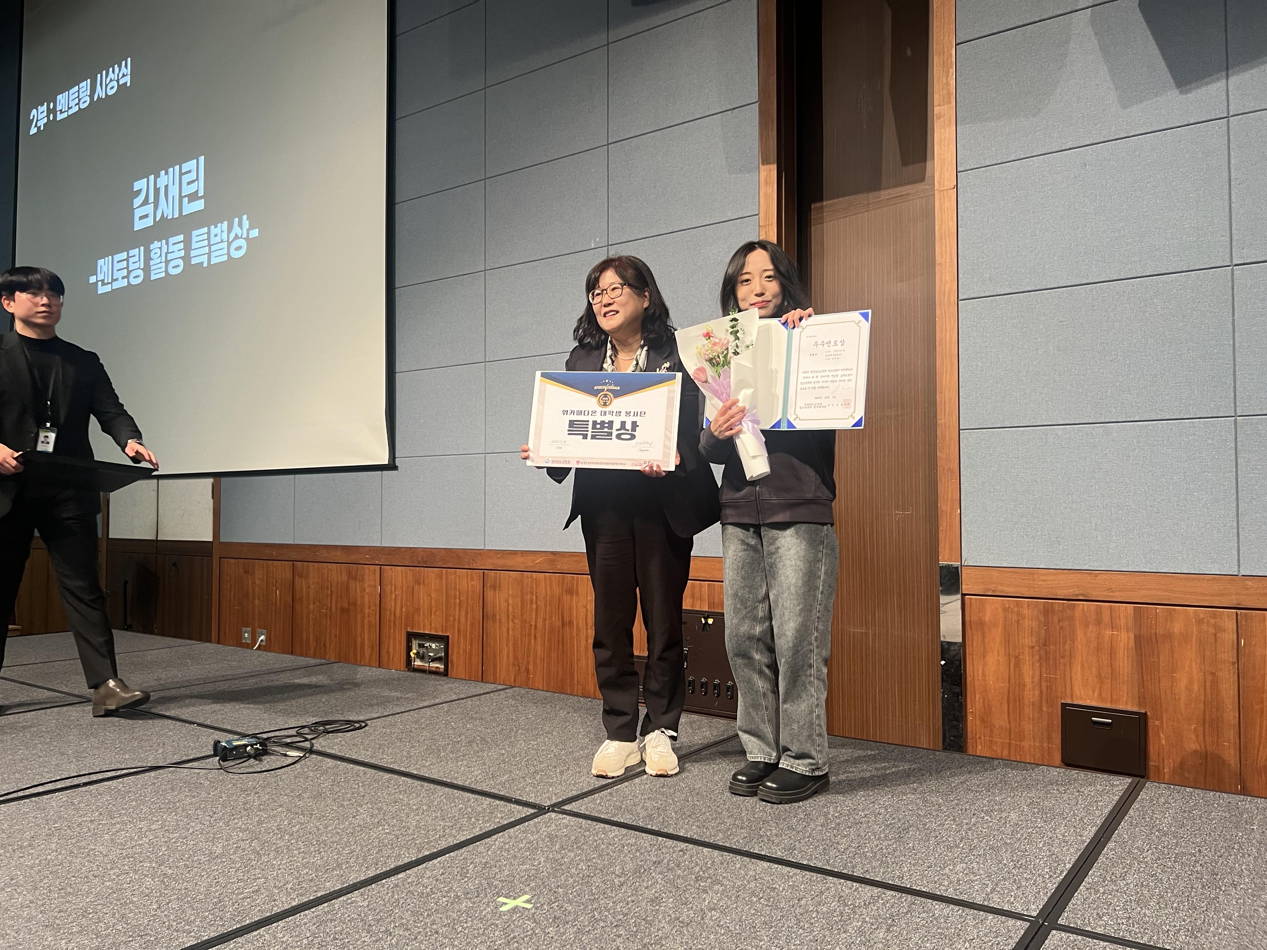 대상으로는 한 번도 빠지지 않고 다양한 활동을 통해 멘티의 건강한 성장을 도모해준 강정재, 맹새봄 선생님이 수상하셨습니다.