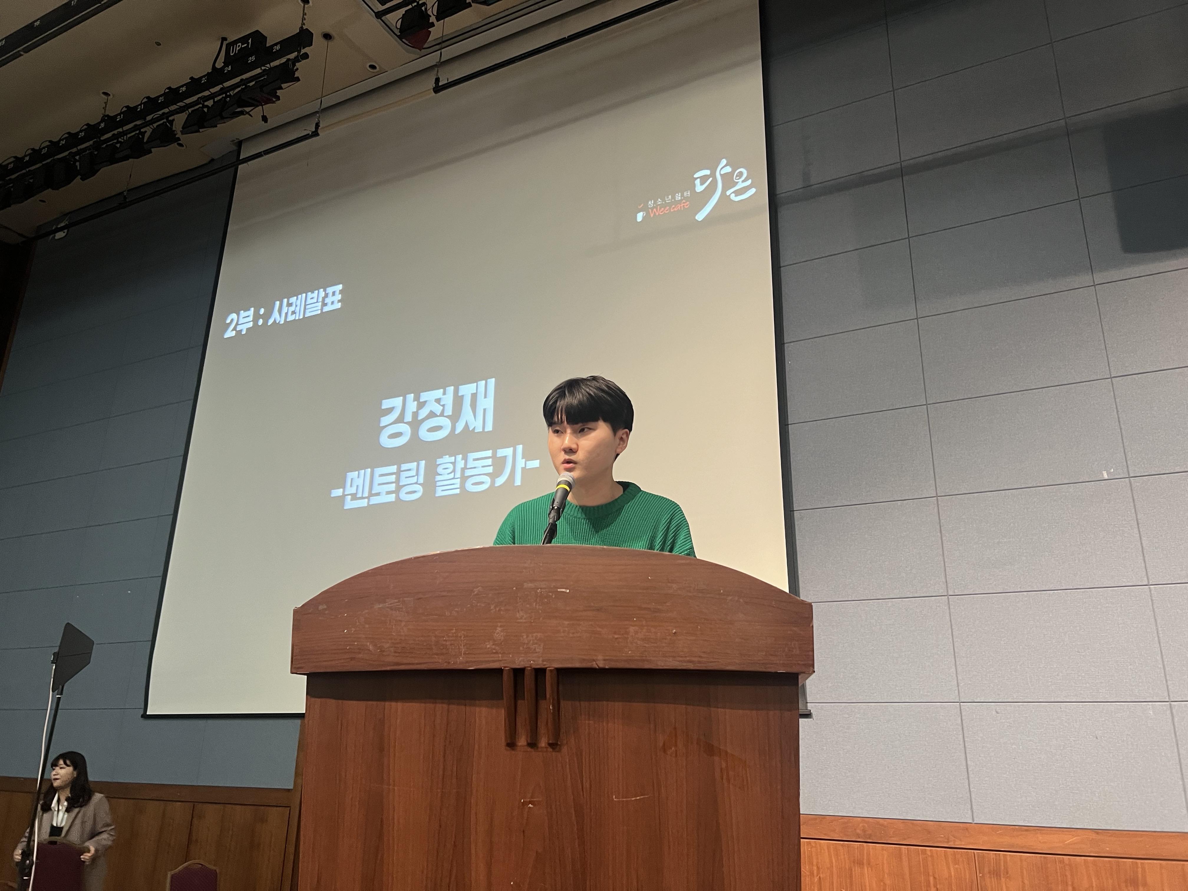 우수 멘토 선생님 강정재 멘토 선생님과, 맹새봄 멘토 선생님의 멘토링 사례발표 시간을 가졌습니다. 멘티가 행복하게 성장할 수 있도록 최선을 다해주고, 정서적 탐색 및 지지를 위해 고민하고 다양한 프로그램을 개발하며 풍성하게 해준 두 멘토 선생님들에게 감사드립니다.