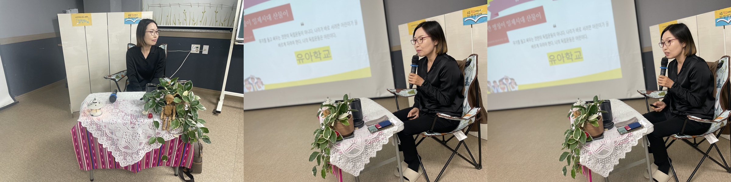 두 번째 사람 책인 김정하 이사의 입담은 너무도 대단합니다. 평소에도 느꼈던 부분이지만 사람 책으로 만나니 확실히 느낄 수 있었습니다. 전문성을 기반 한 사례 중심의 이야기 전개가 귀에 쏙쏙 들어옵니다. 우리 학교에는 아프기도 하고 놀랍기도 한 이야기들이 많다는 사실과 학부모를 넘어서 우리 모두가 학교 이야기에 귀 기울여야 한다는 사실을 알게 해 준 귀한 시간이었습니다.